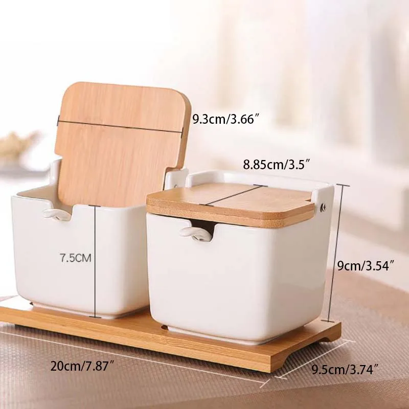 Контейнер для специй с сахарной чашейКерамикаПриправа банка приправы горшок канистра дробилка с крышкой Ложка кухонный инструмент