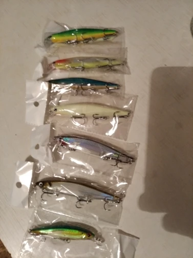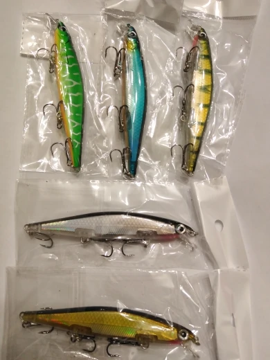 Товар получил комплеком из семи покупок на Али за три недели. Воблеры симпатичные, игра стандартная. В моем случае медленно тонут. Разловил на первом забросе закилошной щучкой и ещё парой карандашей. Я доволен.