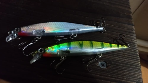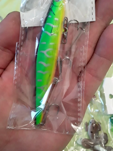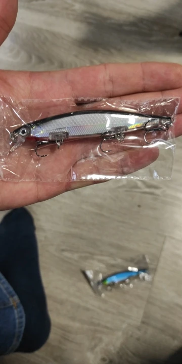 За такие деньги качество супер. Пришли быстро, в районе пары недель до Московской области, объединили в одну посылку с другими заказанными приманками. Я не специалист, но на вид сделаны качественно, крючки очень острые, палец до крови уже проткнул. Петли и кольца вроде в норме, кто хочет, пусть клеит. Длина и вес как в описании. У серебряного очень интересная раскраска, переливается всеми цветами радуги, думаю щуке и другим хищникам понравится. Весной испытаем на рыбалке и посмотрим, какая у них игра. Судя по отзывам, один из самых уловистых воблеров на Али. Проверим. Рекомендую товар и продавца!