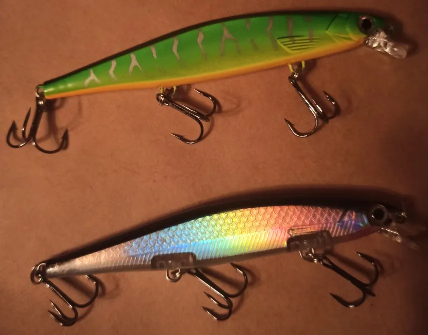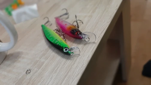 Один воблер пришел другого цвета, спор не открывал. Визуально выглядят качественно, крючки острые