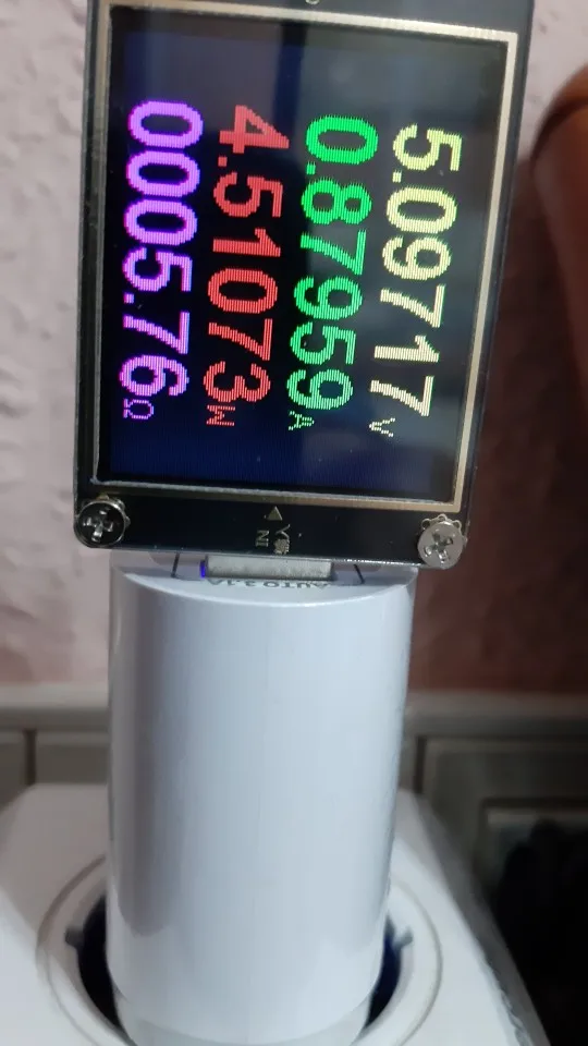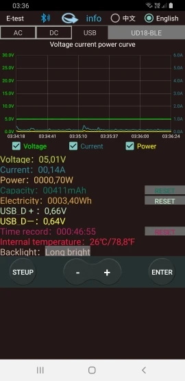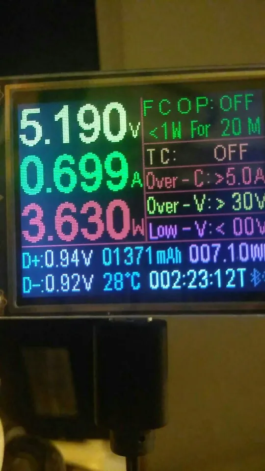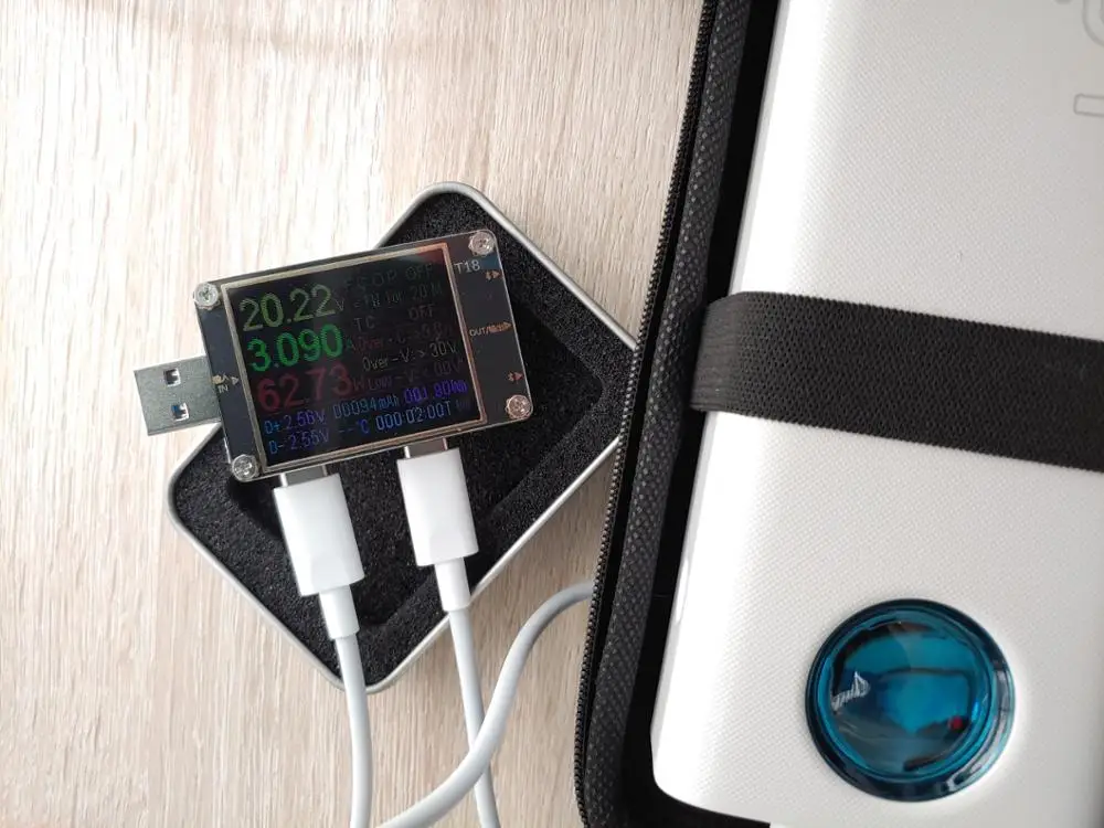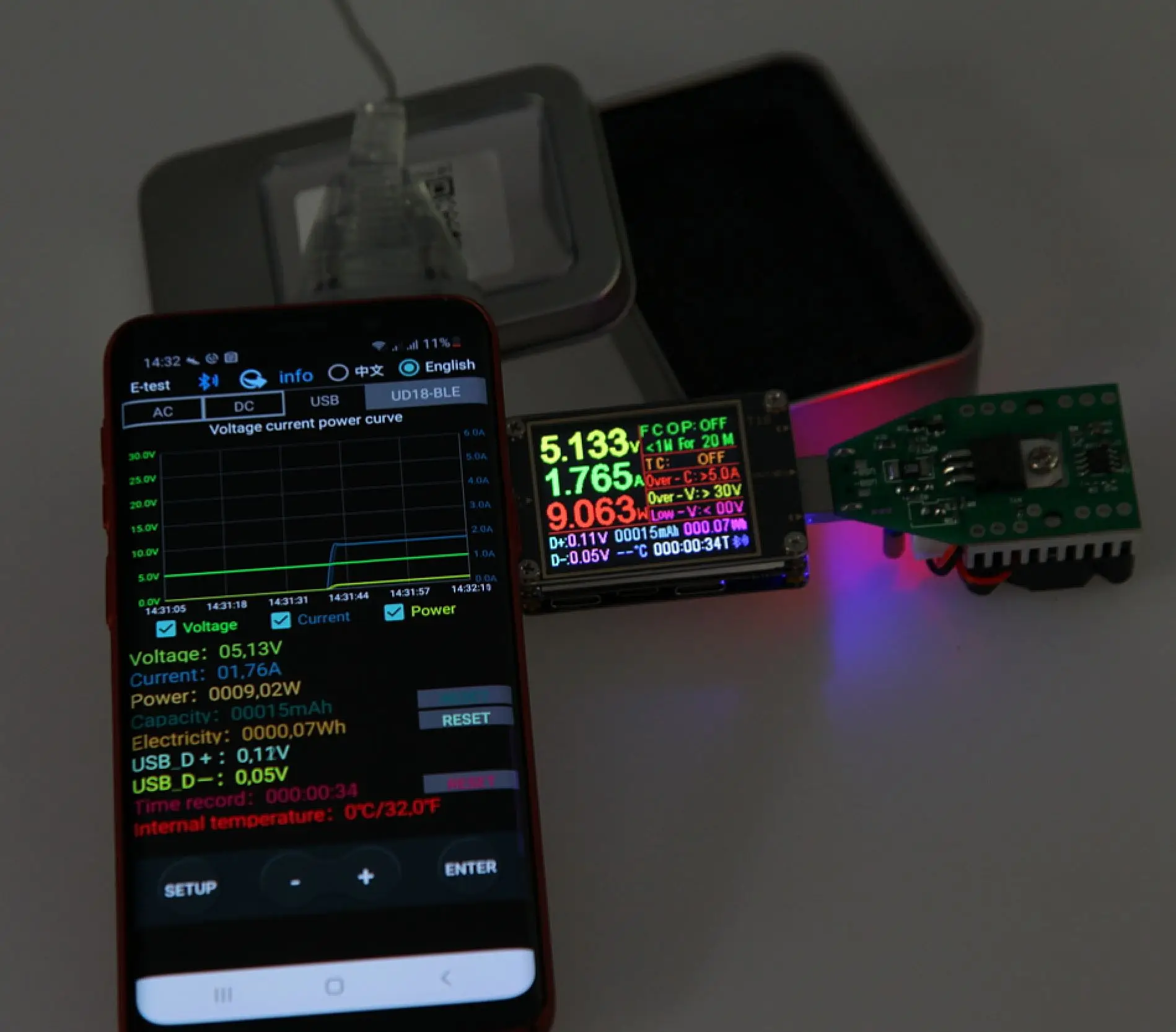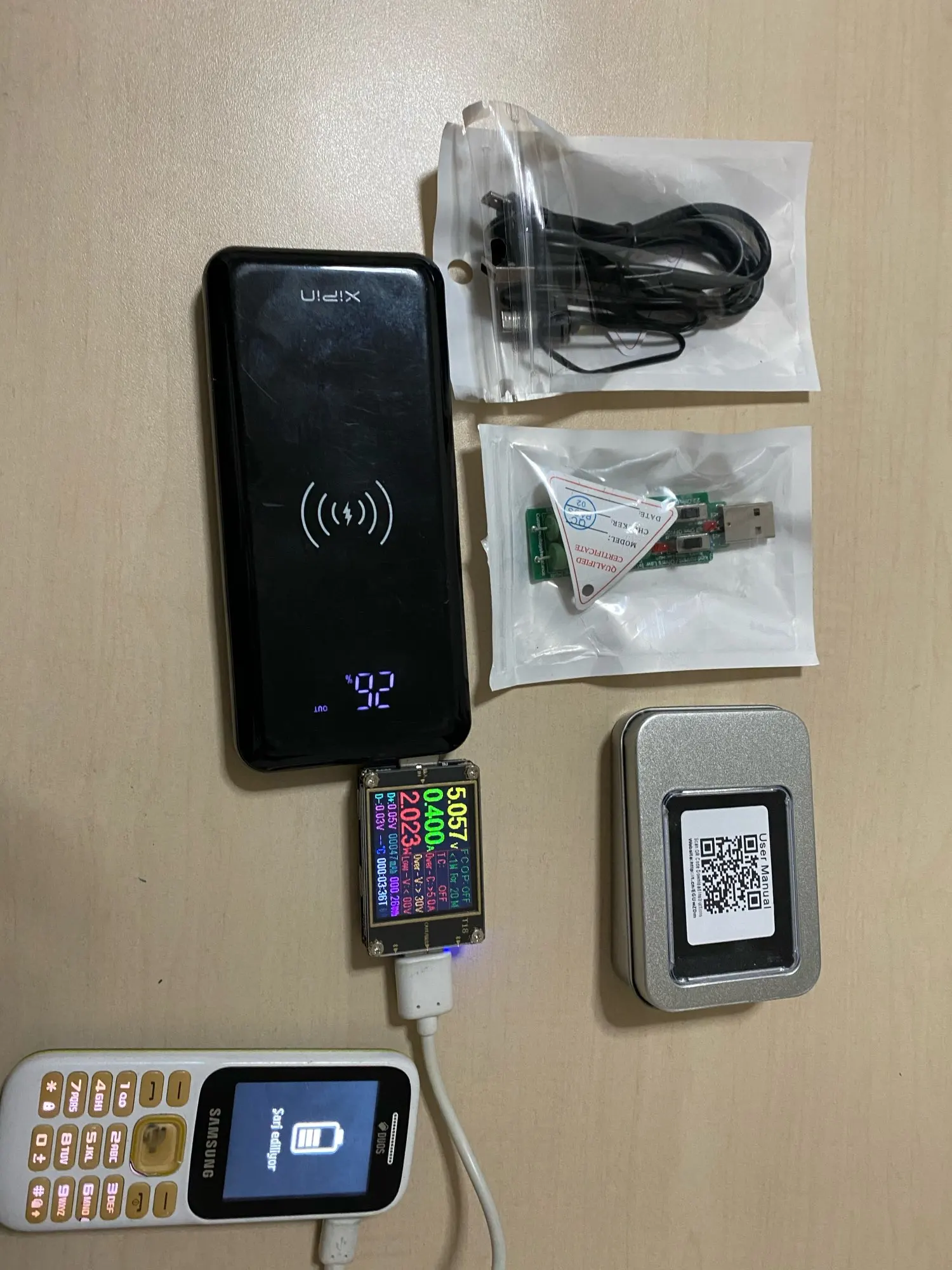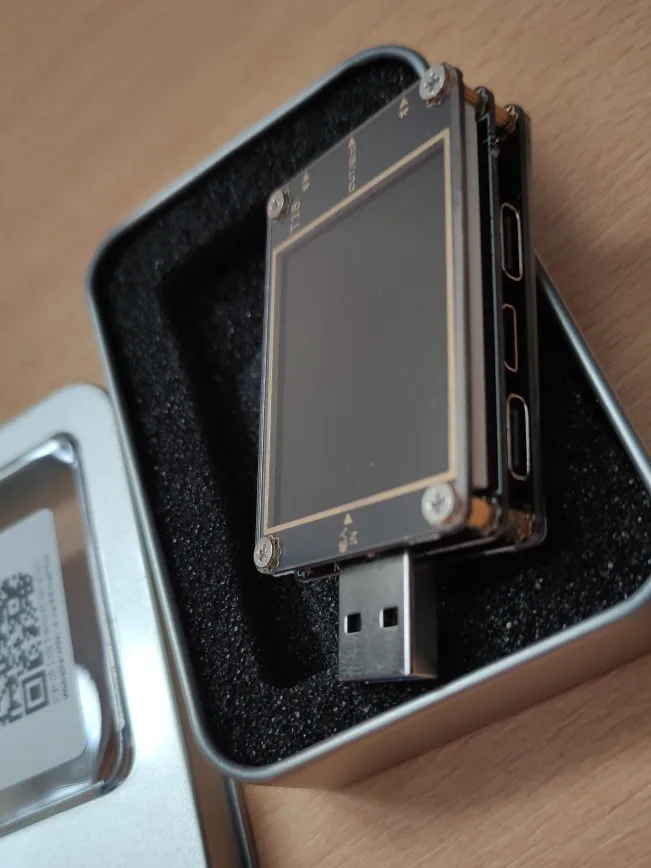 Коробка слегка помята, но тестер целый. По блютуз подключается, но на телефоне и на ПК не выводит показания, как другой подобный тестер. Но брал его в основном за возможность автоотключения при определенных параметрах по току, напряжению или мощности. Эта функция работает нормально, поэтому у меня нет претензий.