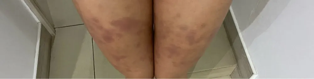 Кто бы мог подумать что этот маленький, легкий аппарат такой мощный!! На фото результаты массажа НА САМОЙ МИНИМАЛЬНОЙ мощности. Все в синяках. Было неприятное ощущение, но я не думала что это выльется в такие синяки к вечеру. Конечно я этот аппарат покупала не чтоб себя гладить, а именно для массажа. Думаю он работает хорошо! Снимаю 1 звезду только за то, что нет уровня ещё слабее