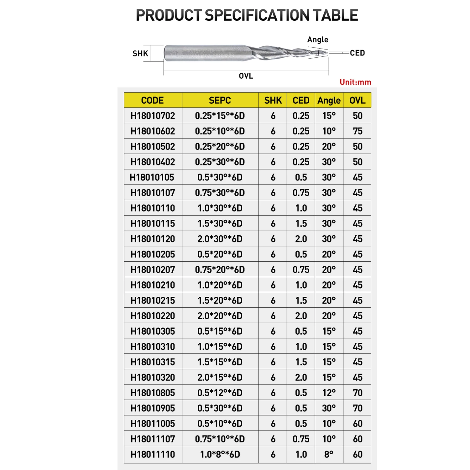 Фреза Концевая HUHAO HRC55, хвостовик 6 мм, Концевая фреза, конический конус, фреза с ЧПУ, гравировальное сверло, фреза для дерева, 1 шт.
