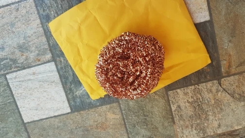 Получено. Медная мочалка, как медная мочалка.