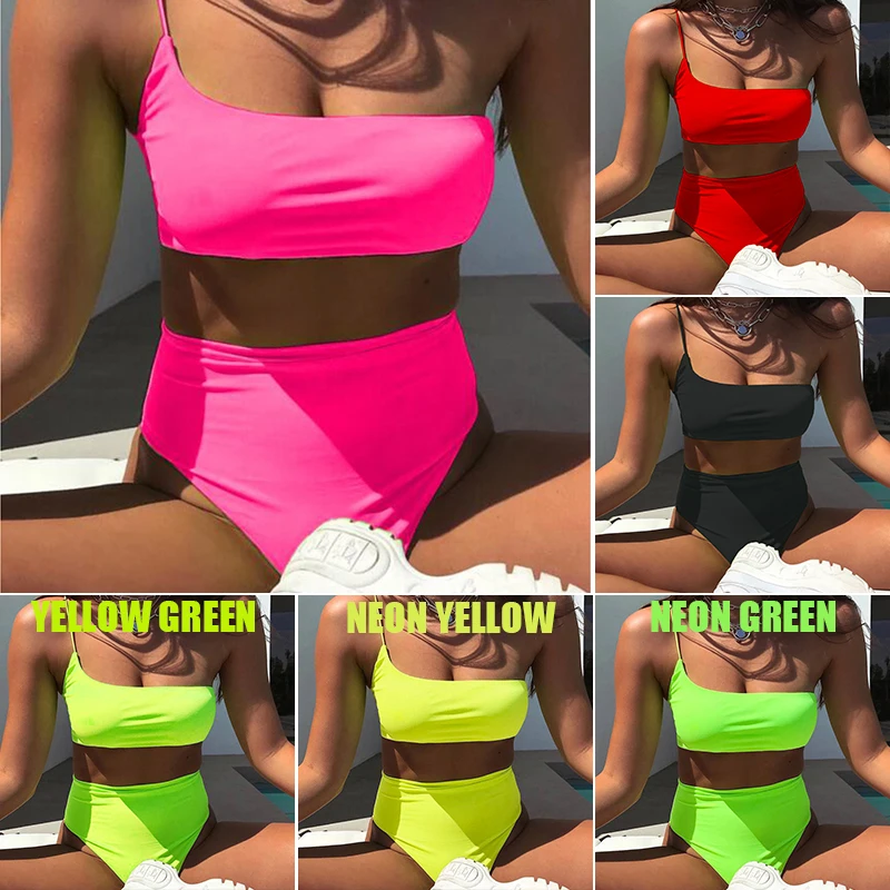 Бикини с высокой талией In-X, 2020, Женский неоновый купальник, женский купальник на одно плечо, топ-бандо, сексуальный зеленый купальный костюм для купания