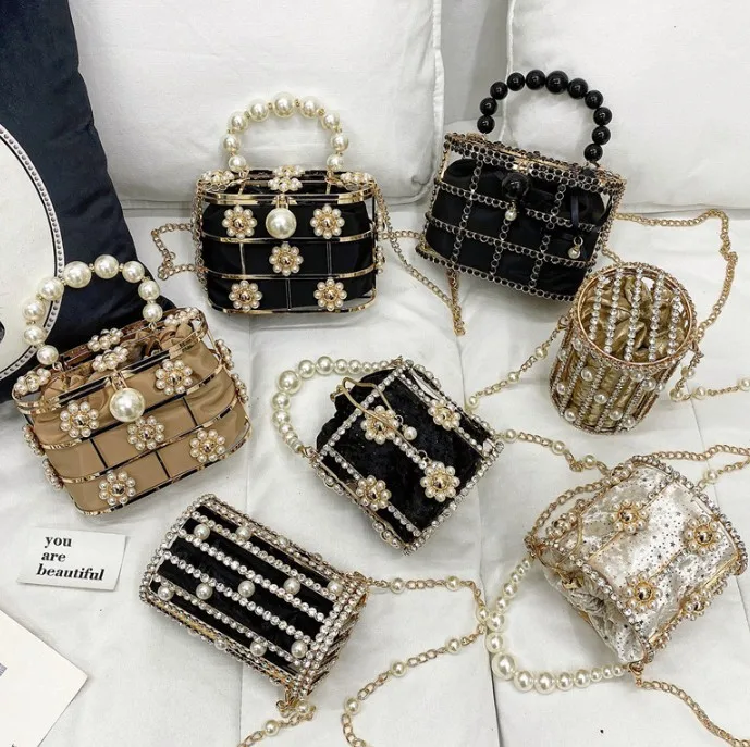 Роскошный металлический женский клатч с жемчужной ручкой и бриллиантами, вечерняя вечерние-мешок, модные дизайнерские кошельки и сумочки
