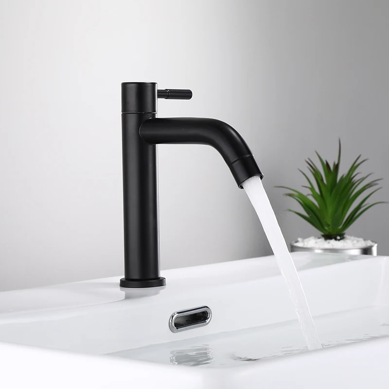 Одинарный смеситель для холодной воды, с черной краской, для раковины в ванной, с высокими смесителями, из нержавеющей стали 304