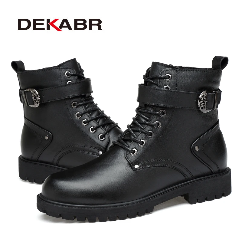 Мужские ботинки до щиколотки на шнуровке DEKABR, мотоциклетные защитные рабочие ботинки из натуральной кожи в стиле панк, мужская обувь, зима 2022