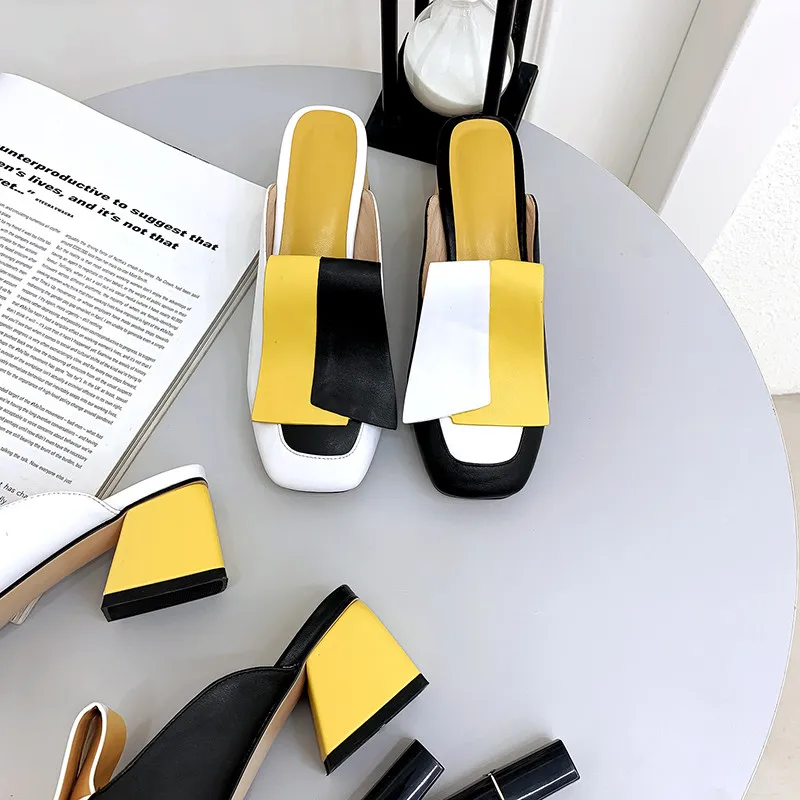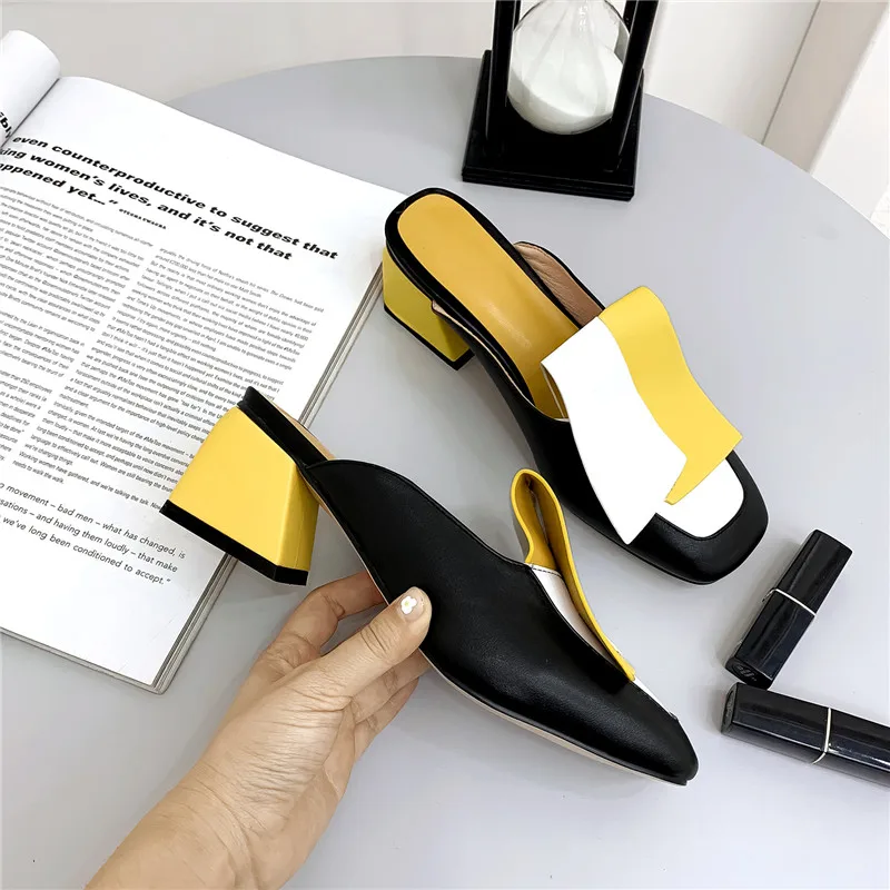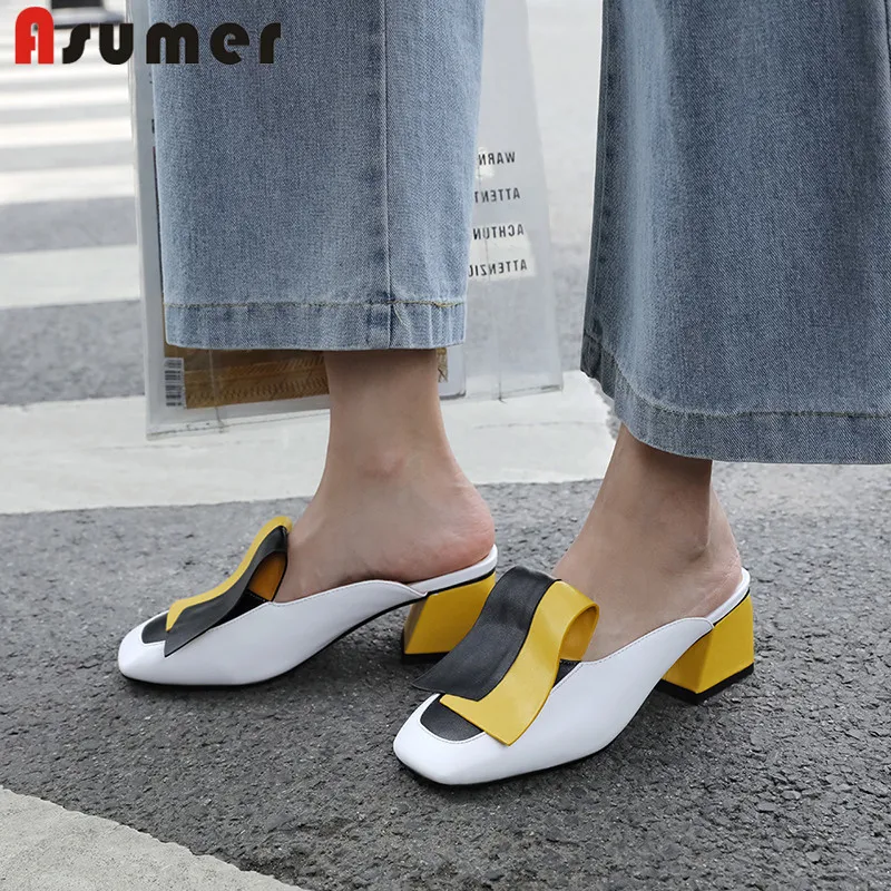 Женские босоножки без задника ASUMER, разноцветные сандалии на высоком квадратном каблуке, туфли без задника, большие размеры 34-45, лето 2021