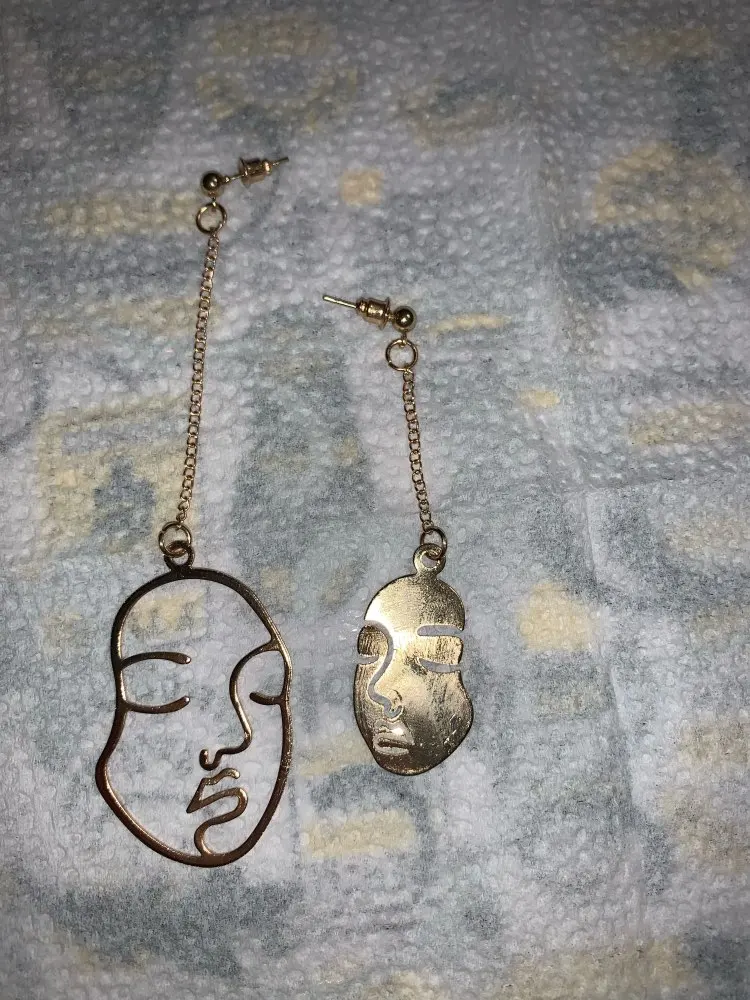 Классные ассиметричные серьги, единственное, есть неровности на, так скажем, лицах.