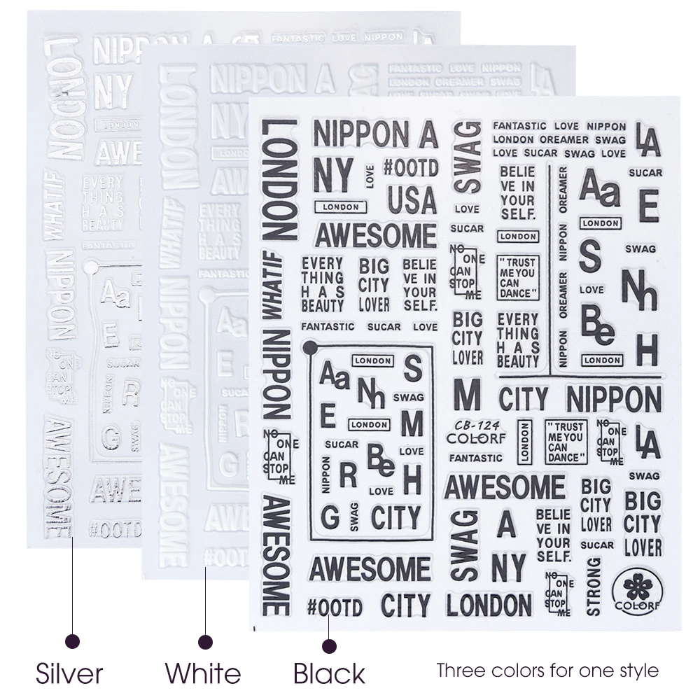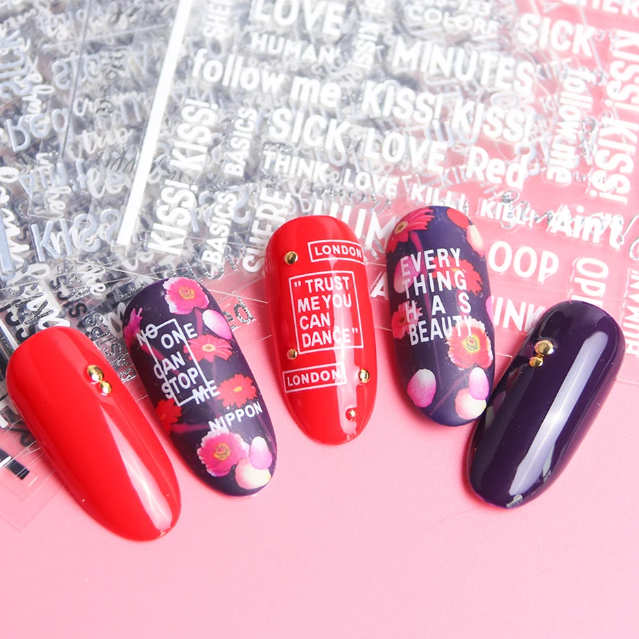 Наклейки-Слайдеры для ногтей, буквы 3D, 1 шт., декоративные стикеры клейкие надписи, фольга с алфавитом, инструмент для маникюра CHCB122-124
