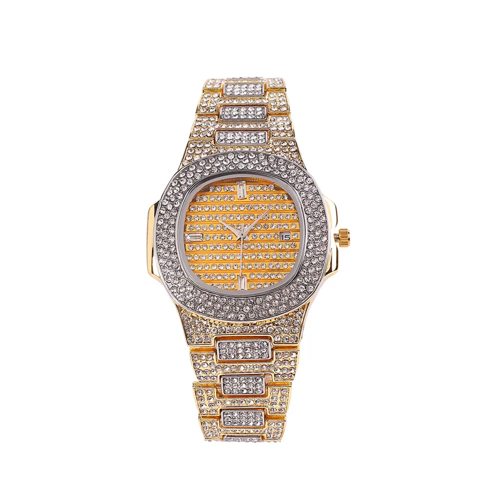 Для мужчин часы мода алмаз Автоматическая Дата кварцевые часы для м...