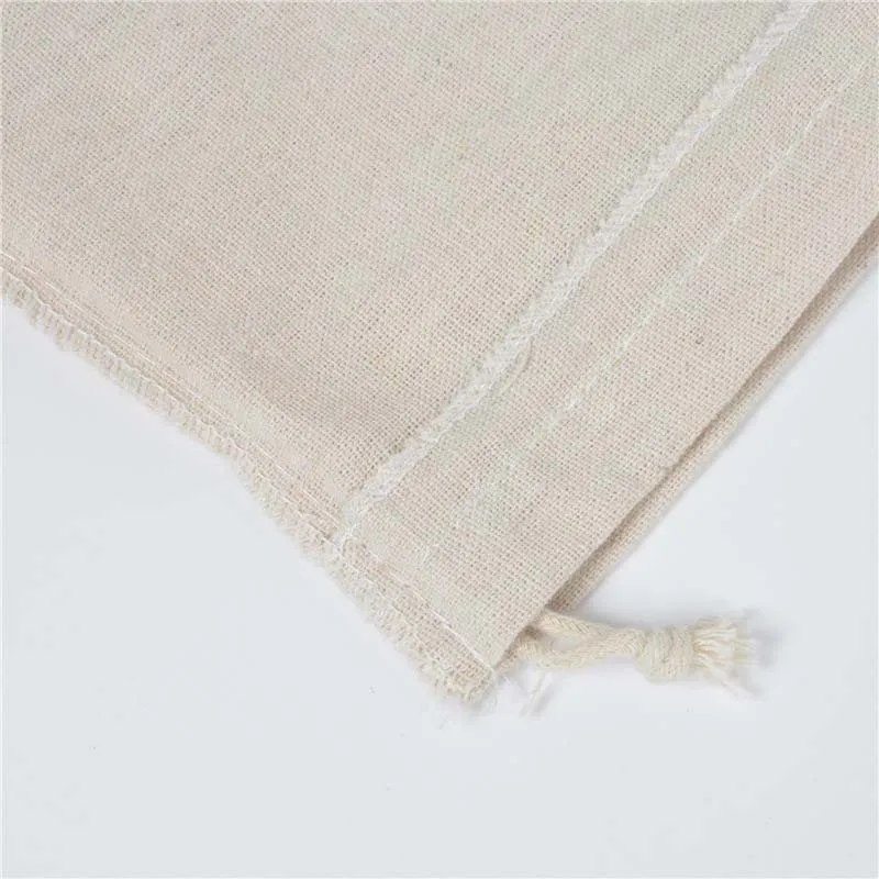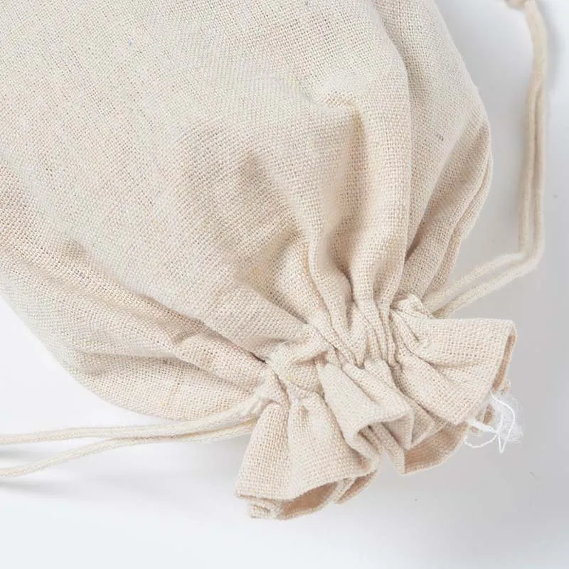 Мешочек на шнурке из натурального джута и льна, с принтом логотипа