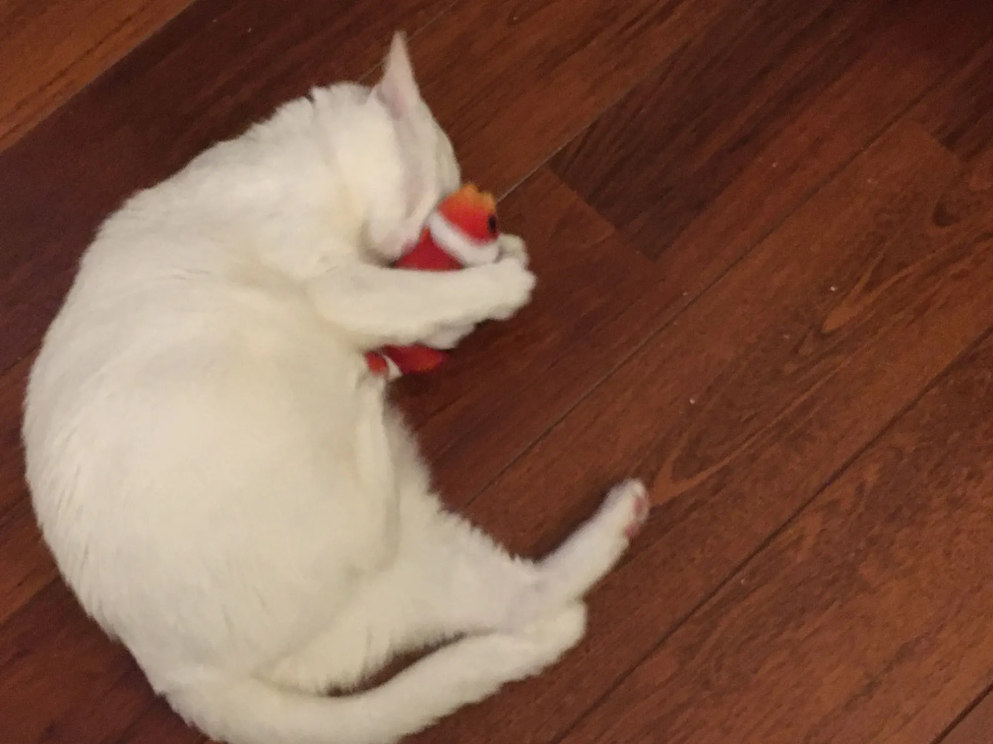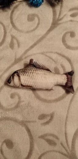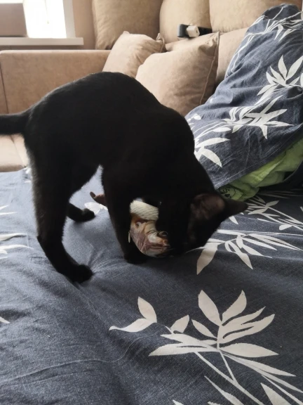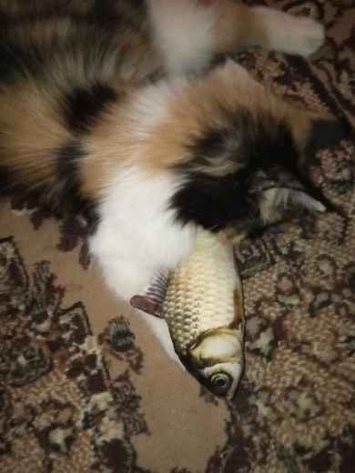 Прикольная имитация рыбы. Да, котенок любит иногда ее потаскать. Но все же больше любит игрушки из материала, куда можно запустить свои зубы и когти.