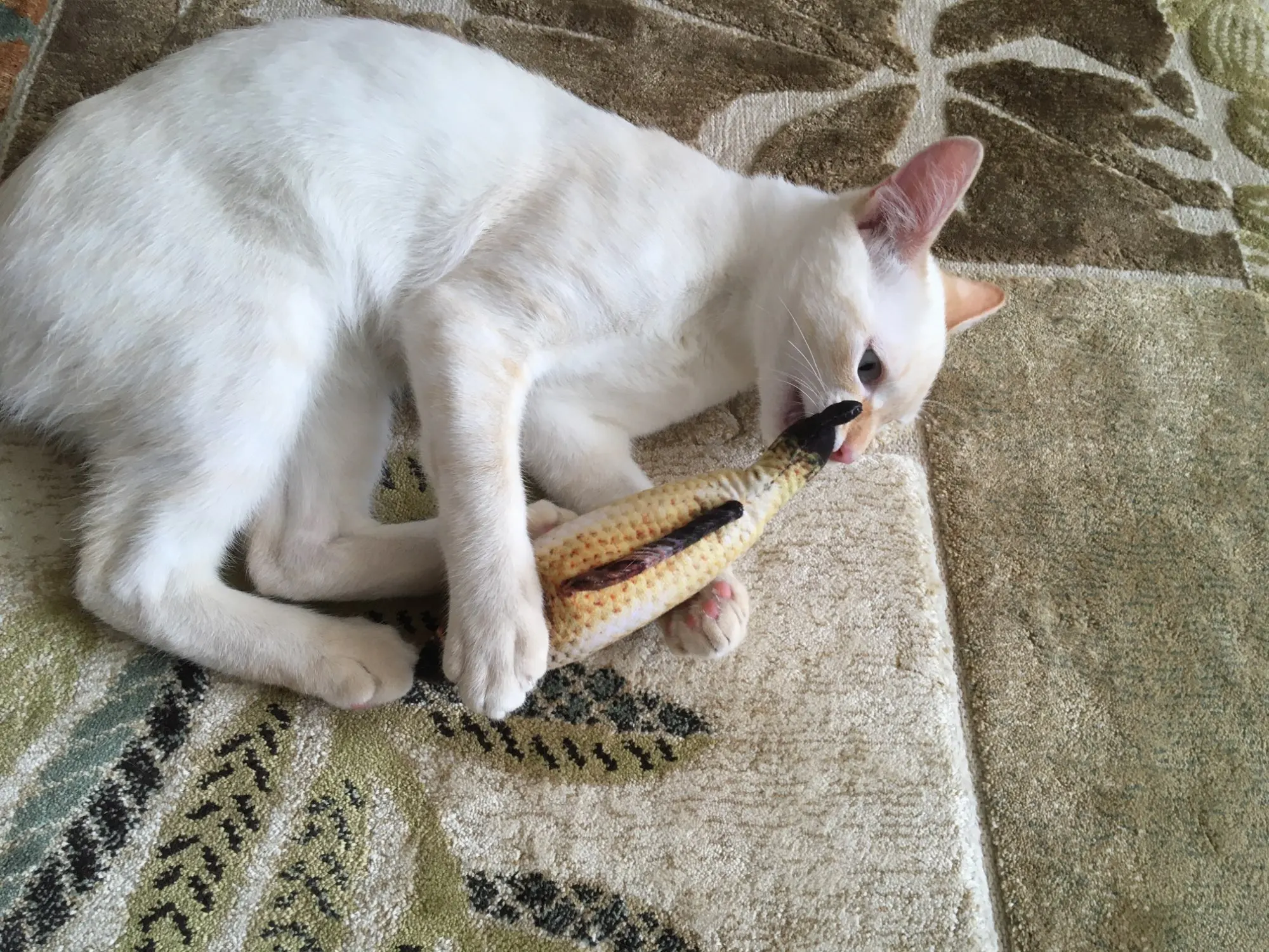 игрушка хорошая. правда кошка рыбу проигнорировала