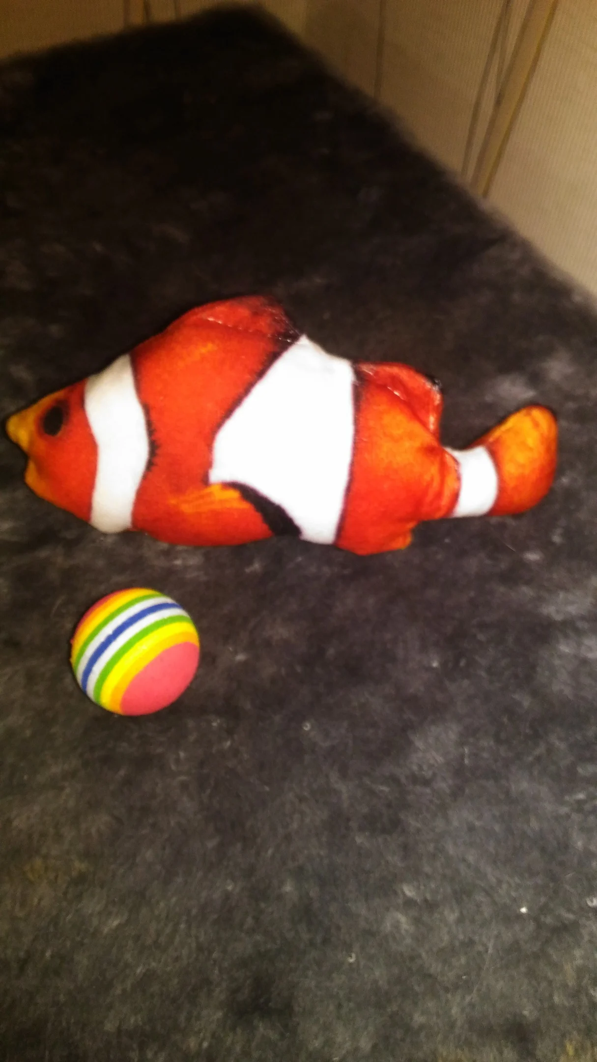 Очень красивые достоверные рыбки. Любовь с первого взгляда у питомца. Играет с удовольствием. Спасибо за прекрасные игрушки, закажу еще на подарок. Отправка вовремя, дольше пролежали на местной сортировке. Претензий к продавцу нет. Питомец счастлив. Спасибо большое!