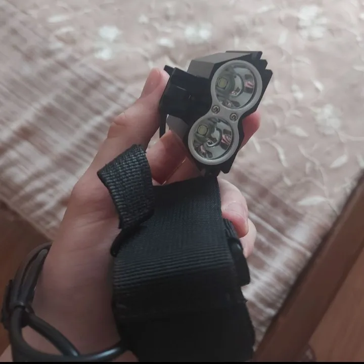 Фонарь очень яркий! Три уровня яркости. На третьем ночью видно всё!;) Комплект соответствует описанию. Зеленые светодиоды на задней крышке фонаря могут напрягать при езде ночью. Аккумулятор крепится отдельно (он не в корпусе фонаря и не вставляется в него) на сумке. Для его зарядки вынимается из сумочки и заряжается дома отдельным зарядником (в комплекте). Фонарь пришёл быстрее заявленных сроков.