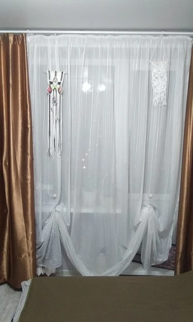 При покупке этого товара лучше купить 2, потому что с нормальными занавесками этот товар немного короткий. Было бы лучше на 10 см больше. Но за эту цену лучше купить 2