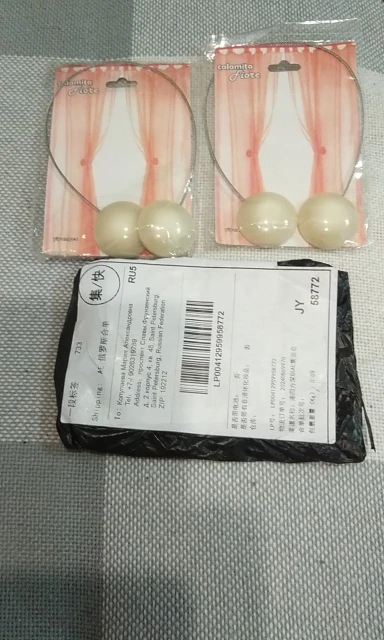 Посылка прибыла в место вручения через 18 дней, на пятый день ее объединили еще с тремя посылками и далее они следовали под новым отслеживаемым трек номером. Подвязки для штор сделаны весьма качественно, смотрятся не громоздко и довольно симпатично. Брали два комплекта разных цветов с учетом особенностей интерьера. Покупкой остались полностью удовлетворены, рекомендую.