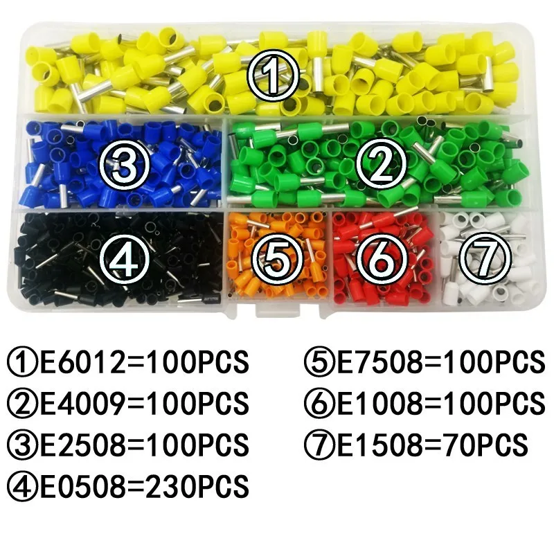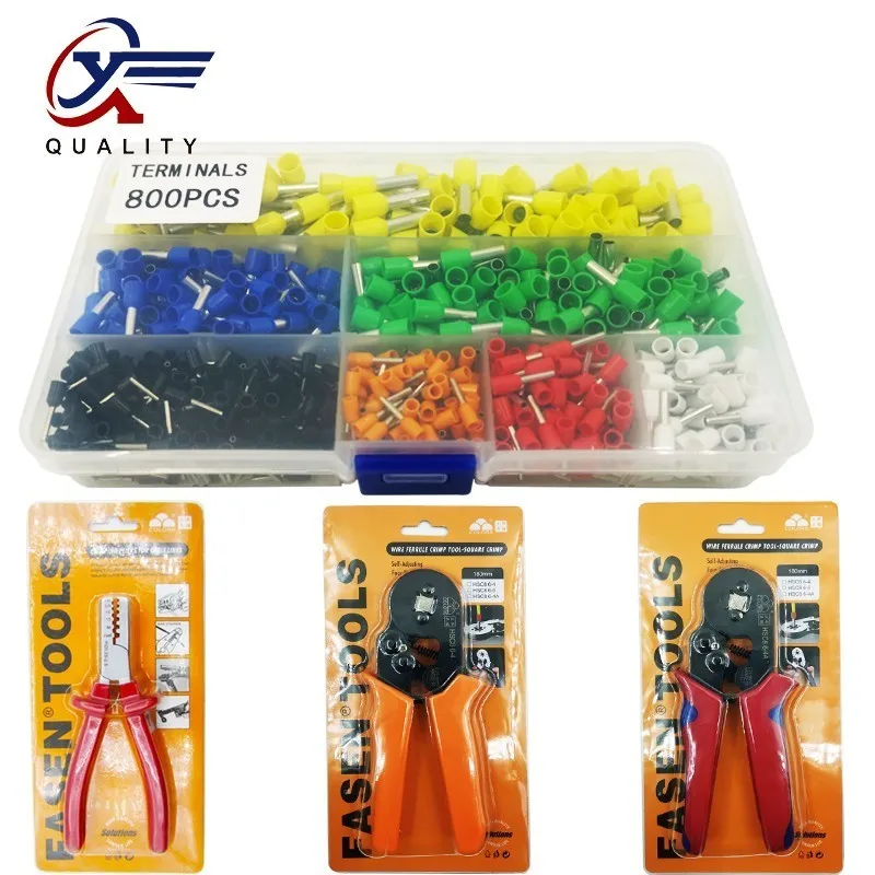 800 шт. E0508 E7508 E2508 E1508 E1008 кабельный Терминал Коннектор с ручным обжимным наконечником плоскогубцы обжимной набор инструментов AWG 10-23