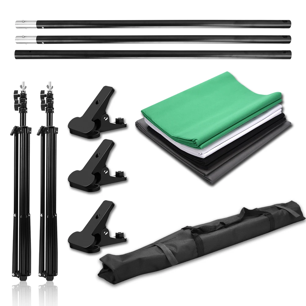 Zuochen фотостудия регулируемый задний фон Поддержка Стенд Комплект 1,6x3 м черный/белый/зеленый/серый фон Экран + 6.5ft x 6.5ft / 2m x 2m фоновый каркас Поддержка Системы + 3 знака после зажимы + сумка для переноски