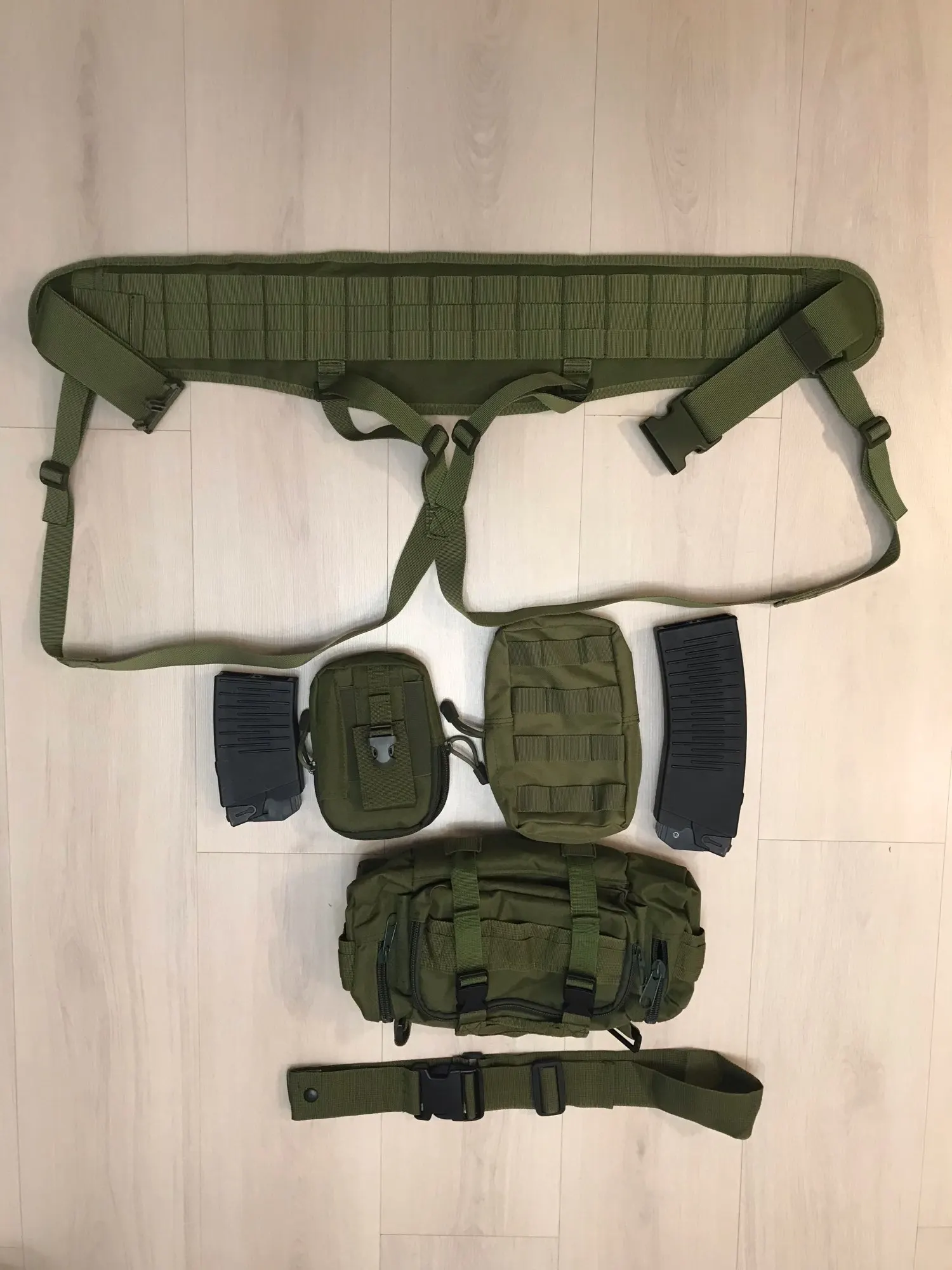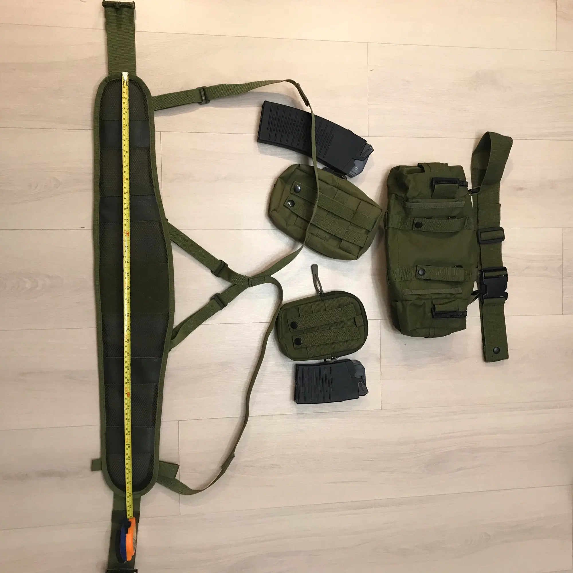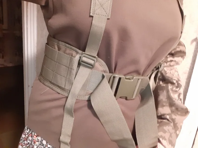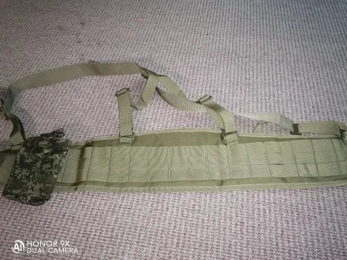 пояс отличный но вот лямки так себе в плечи въедаются как не настраивай . навесил свои подсумки сидят как родные (они тоже из Китая)
