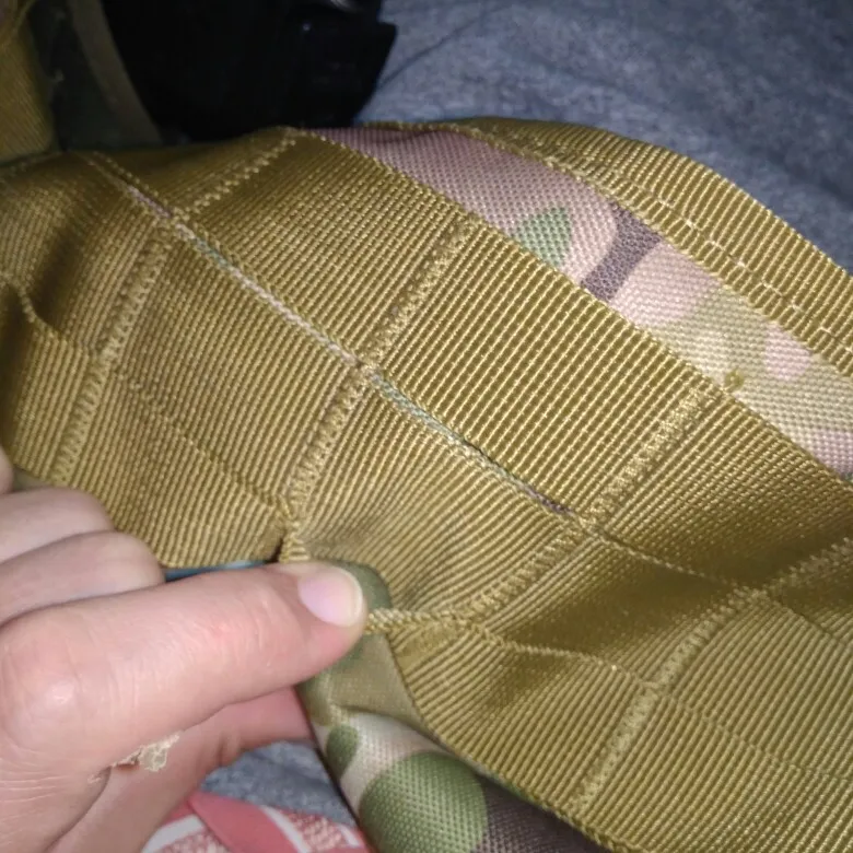 Качество хорошее, но конструкционное решение и пошив странные - нашито не три отдельных molle-стропы, а широкая двойная верхняя и обычная узкая нижняя, а поверх широкой верхней нашита вторым слоем обычная узкая, и создается вид, что пришито три обычных стропы.