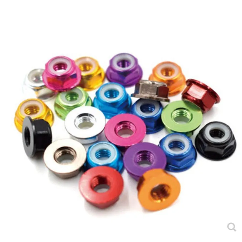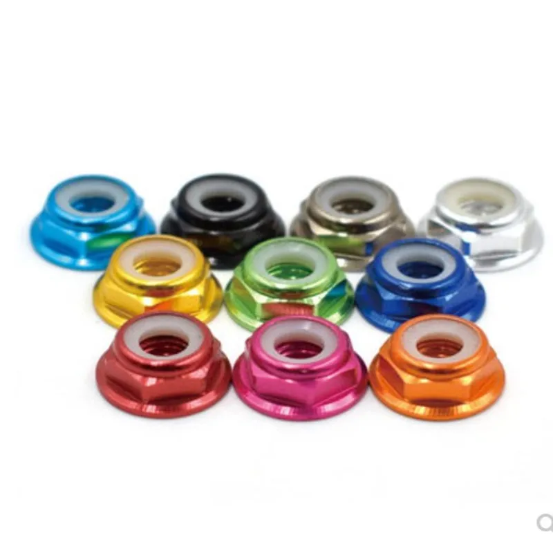 10 шт. M2 M3 M4 M5 M6 краснаячернаясиняясветло-голубаяоранжеваяЗолотаяфиолетоваяРозоваяСеребристаясерая анодированная алюминиевая Фланцевая нейлоновая фиксирующая гайка
