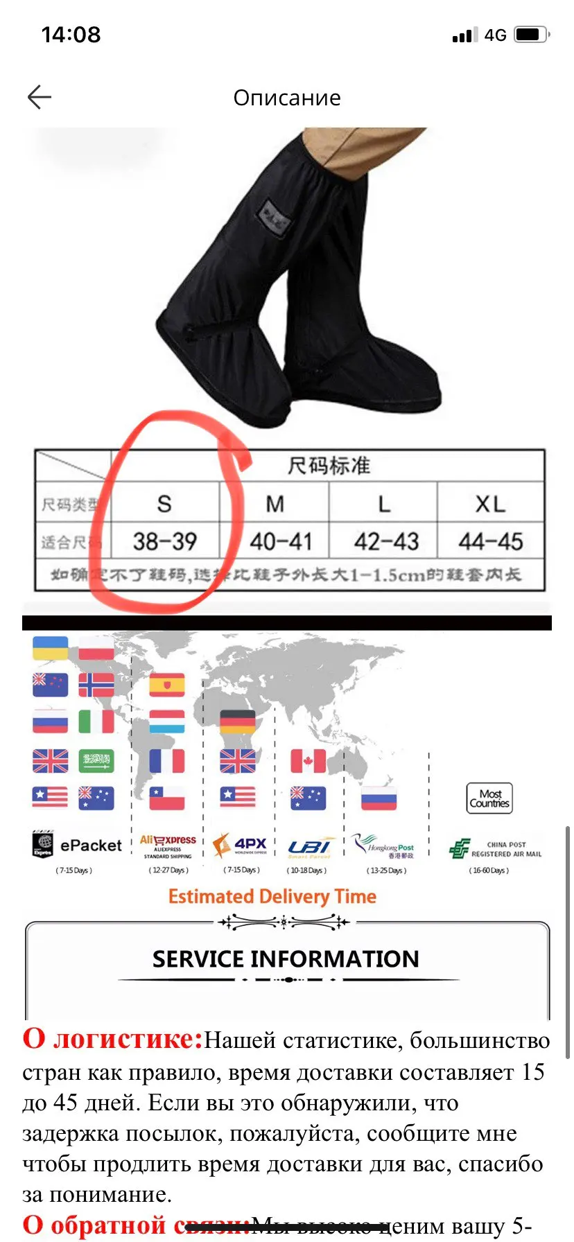 Отличные бахилы, испытаны многочасовыми дождями. Купил две пары: L и XL. У меня 43. На мотокеды идеально подходят меньшие, а на ботинки уже нужен XL.