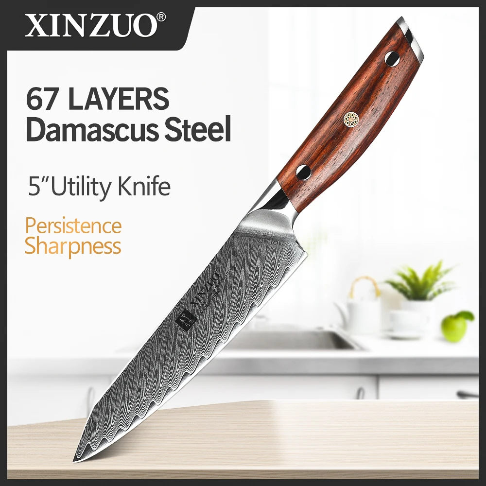 Кухонный нож XINZUO, Многофункциональный кухонный прибор из дамасской стали VG10, 5 дюймов, 62 HRC, для шеф-повара