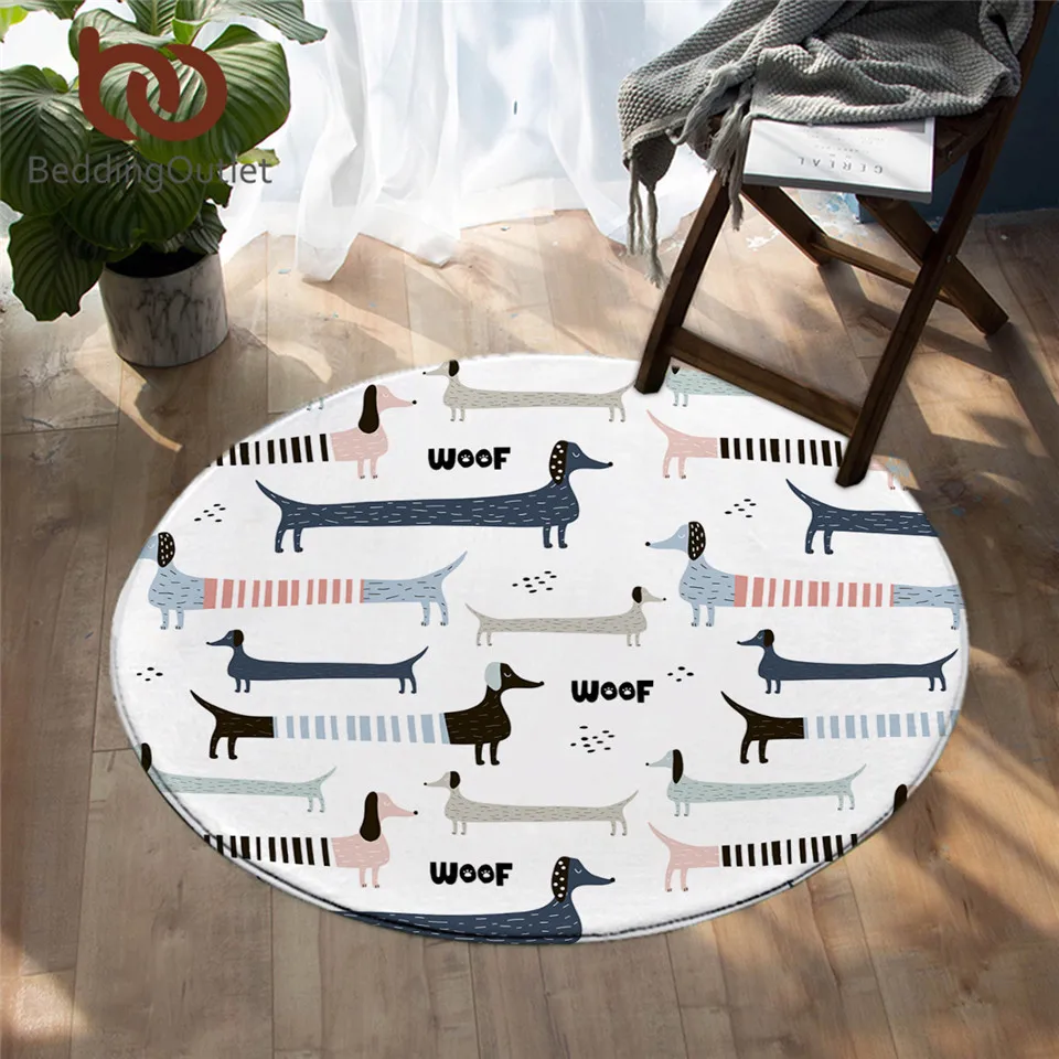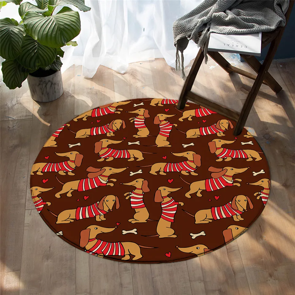 BeddingOutlet напольный коврик такса мультяшный нескользящий круглый ковер для детей коричневый полосатый коврик для спальни Домашние животные Собака Детский игровой коврик
