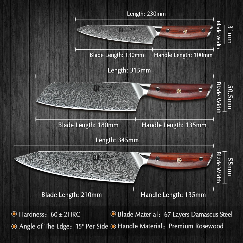 XINZUO 3 шт. наборы кухонных ножей VG10 Дамасская сталь Santoku кухонные ножи шеф-повара острый Кливер ножи для нарезки Подарочный нож инструменты