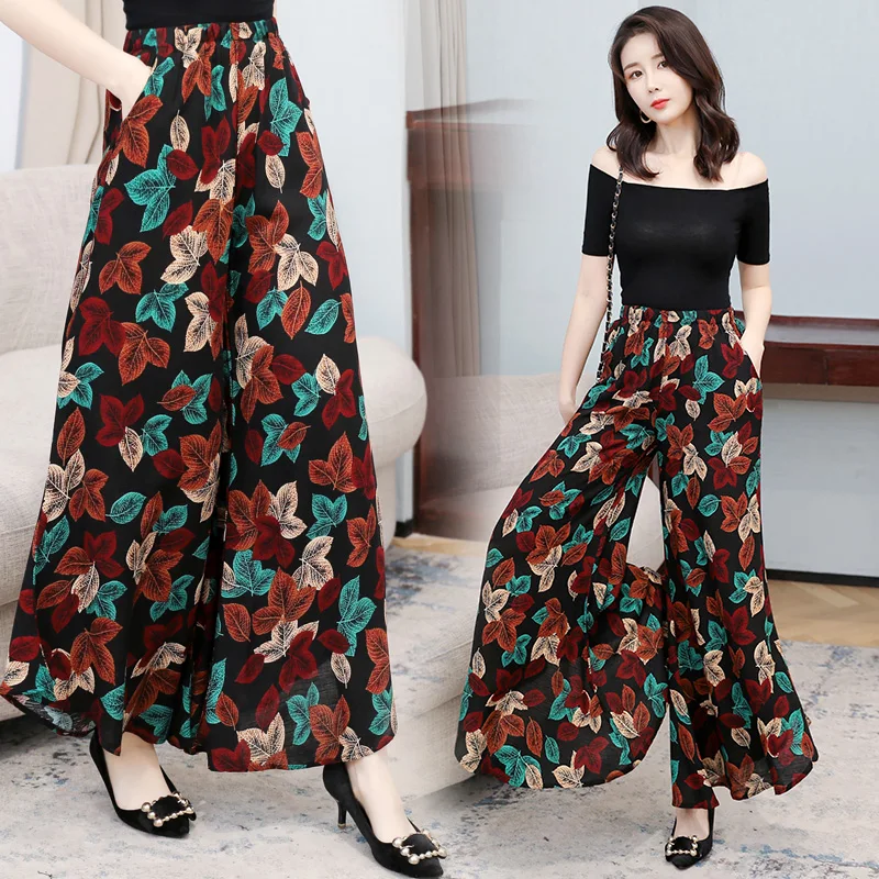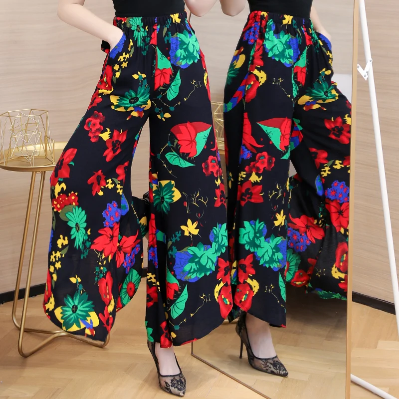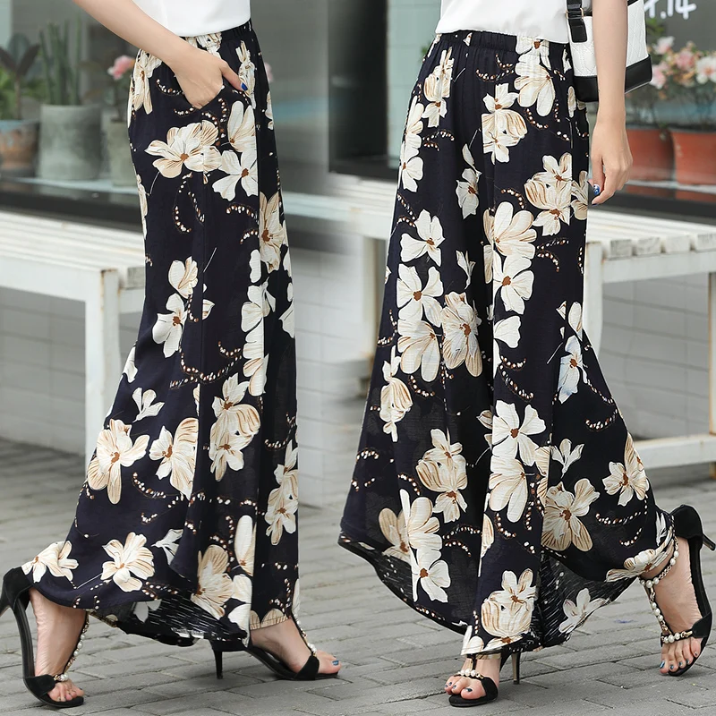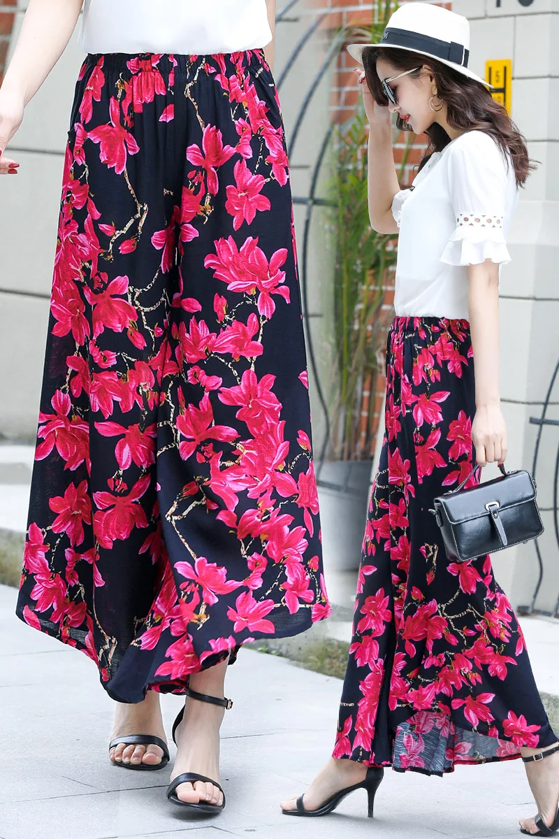 Брюки женские с широкими штанинами, повседневные хлопково-льняные в богемном стиле ретро с принтом, с завышенной талией, юбки с широкими штанинами, пляжные праздничные, на лето