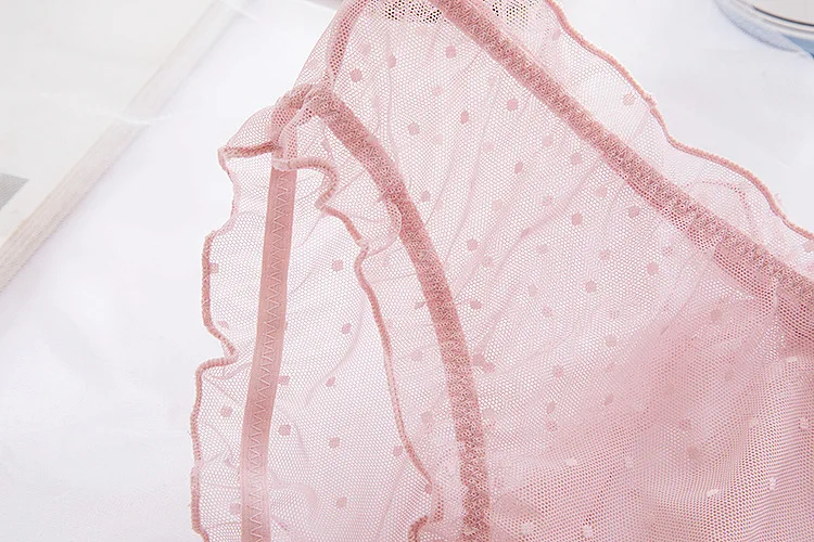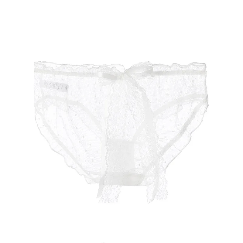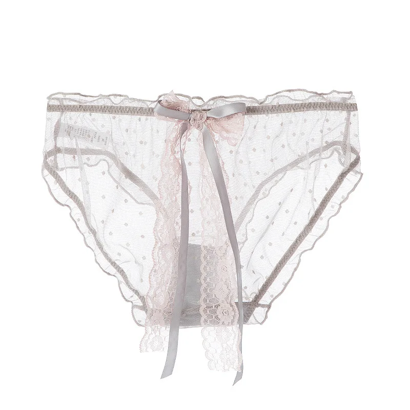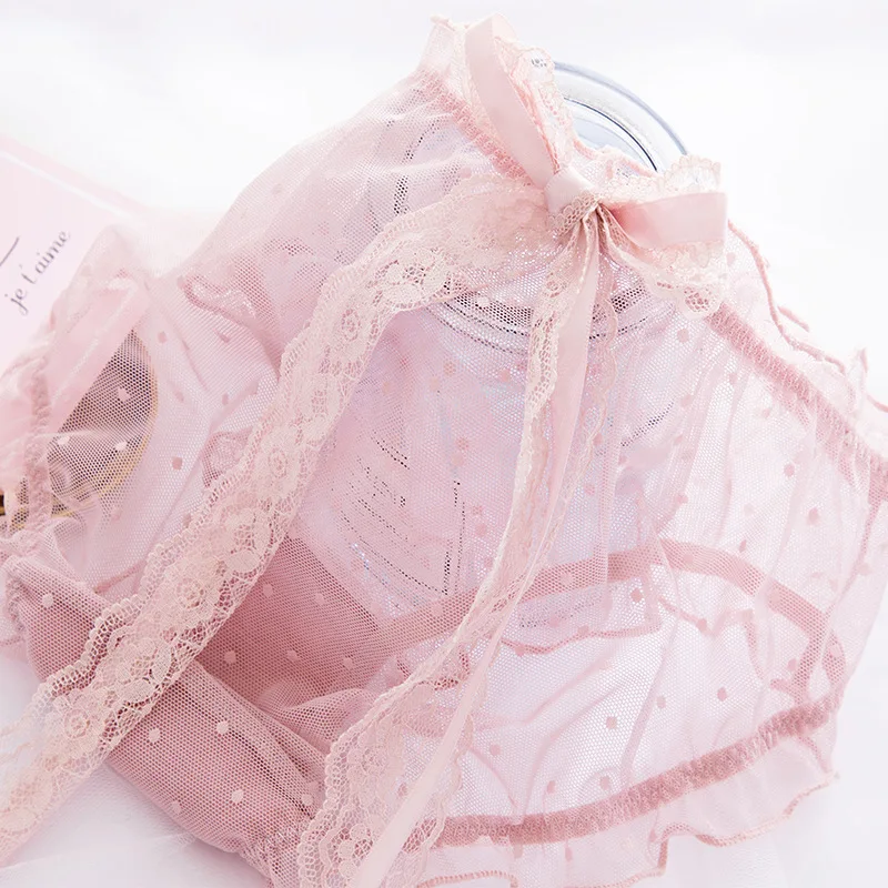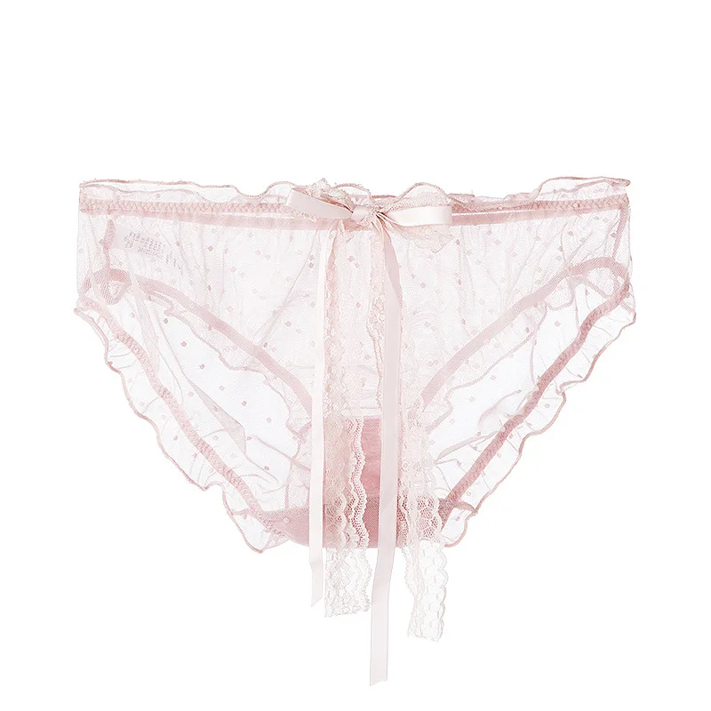 Женские дышащие трусики в горошек, пикантное Прозрачное нижнее белье с завязками-бантиками, милые кружевные трусики с низкой талией
