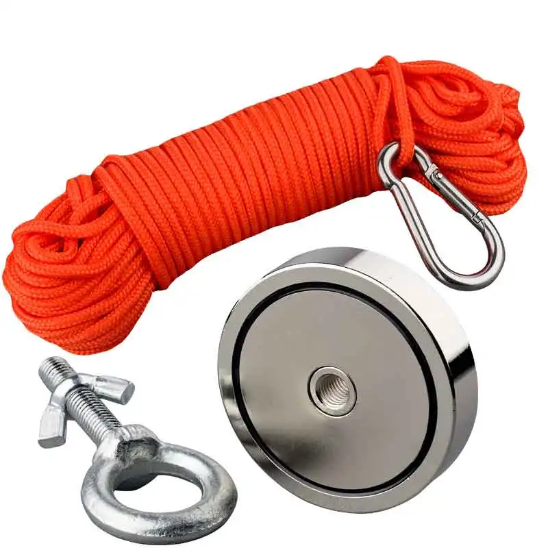Мощный Неодимовый Магнит N52 200 кг, рыболовные восстанавливающие магниты Super Imanes с кольцом, магнитное основание из материала с веревкой 20 м
