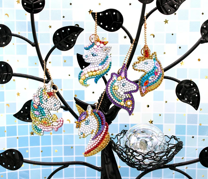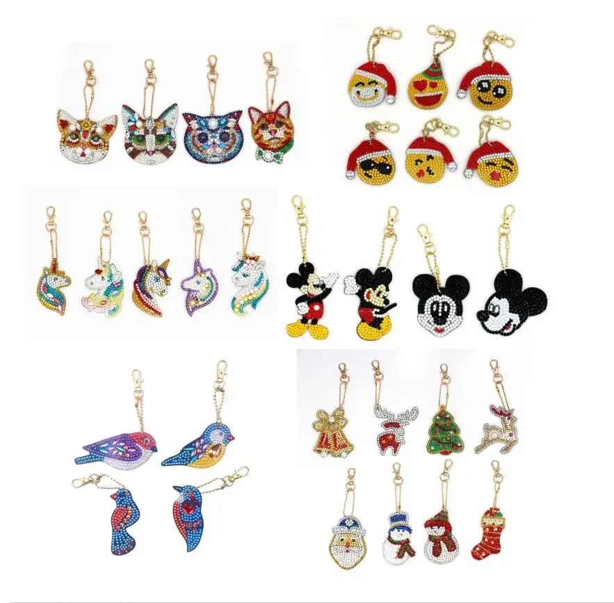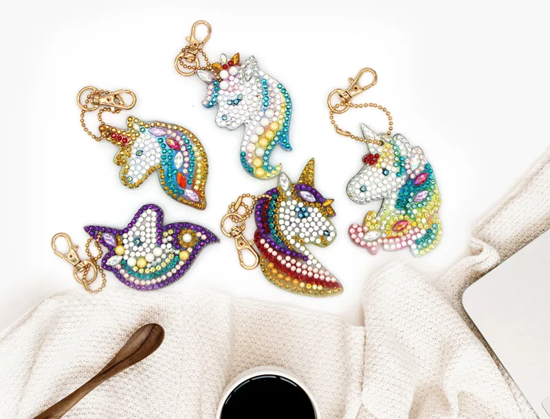 Алмазная мозаика сделай сам, брелок с улыбками, единорогом, животными, двустороннее украшение
