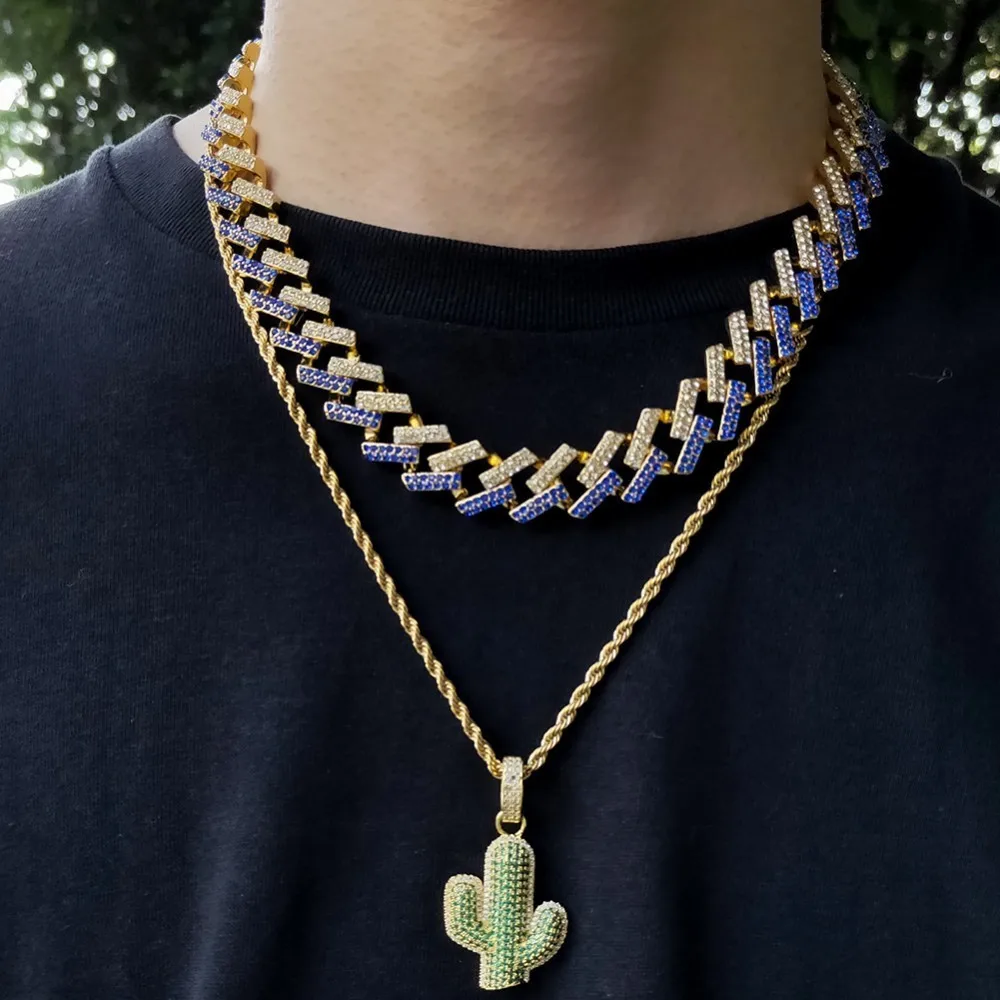 UWIN Прямая поставка модные ожерелья из кубинских звеньев 15 мм многоцветные синиечерные стразы хип-хоп ювелирные изделия для мужчин