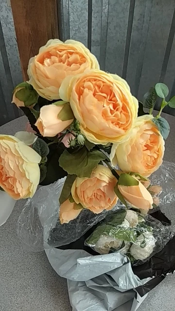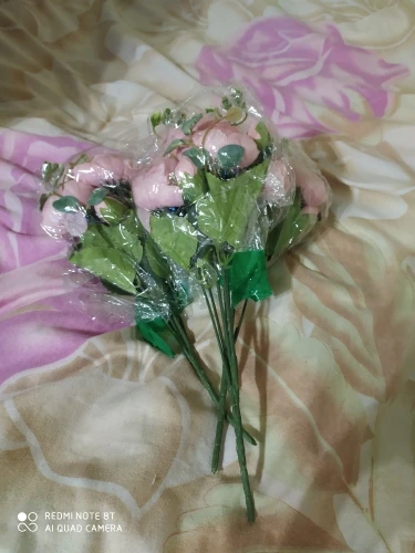 Отличное качество цветов. Несколько мелковаты оказались относительно ожидания: для декоративного букета в небольшую вазочку потребуется три таких букета (3*5=15).