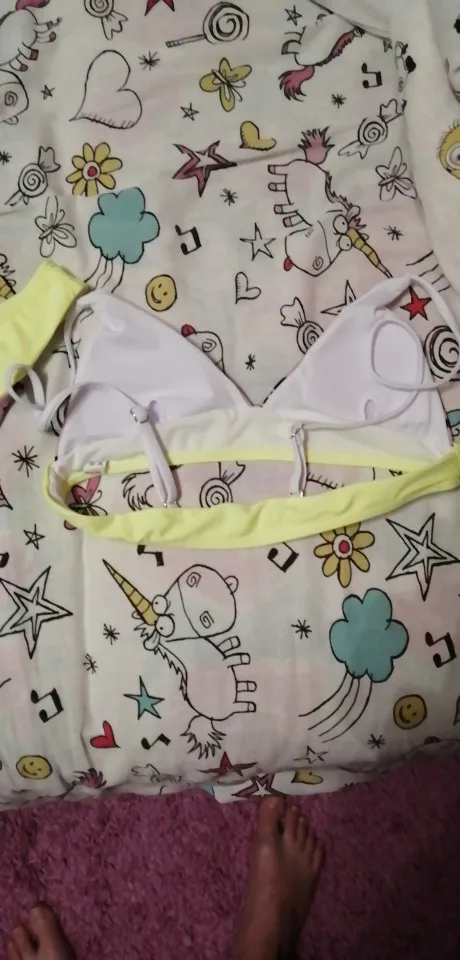 Качество ткани отличное, пошив тоже хороший, без ниток и кривых строчек. Очень яркий салатовый цвет как на фото, лиф без застежек, с одной стороны удобно в ношении, а вот одевать не очень удобно. Трусы высокие, девушкам с низким ростом и слабо выраженной талией не подойдут. Я нижкая 156 не смотрятся, но я это понимала, в ателье планирую трусы переделать. На фото цвет камеры не передает. 100% идентично фото продавца.