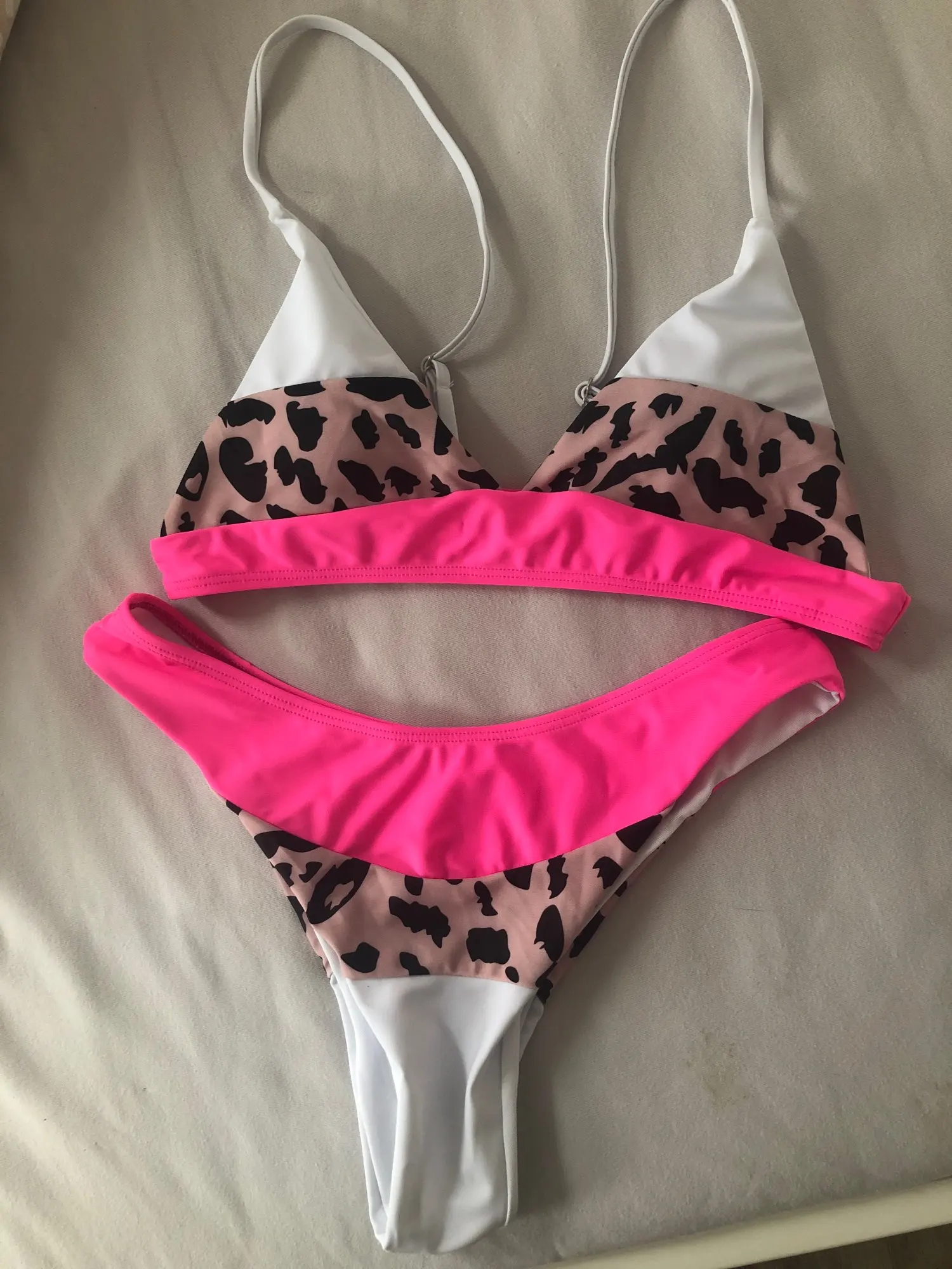 2021 летний женский сексуальный леопардовый комплект бикини в стиле пэчворк, бюстгальтер с вкладышами пуш ап женский пляжный купальник, купальные костюмы, пляжная одежда