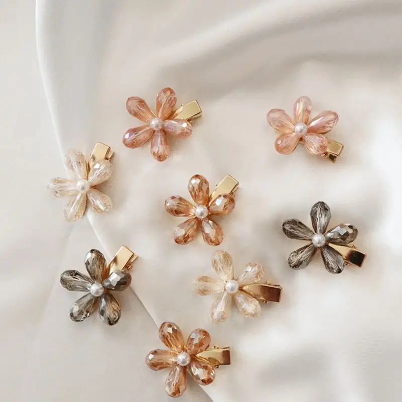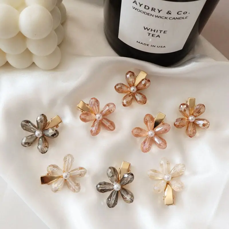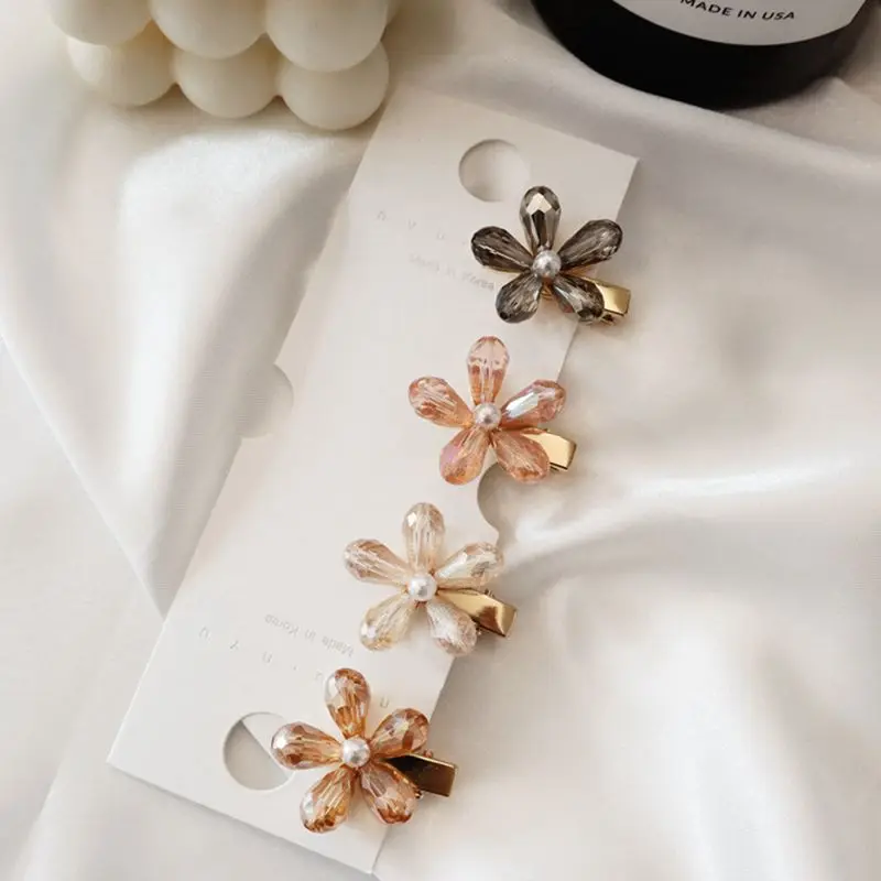 Корейские шикарные жемчужные заколки для волос с цветами, винтажные заколки, заколки для волос с кристаллами, металлические аксессуары для волос, заколка для волос для женщин