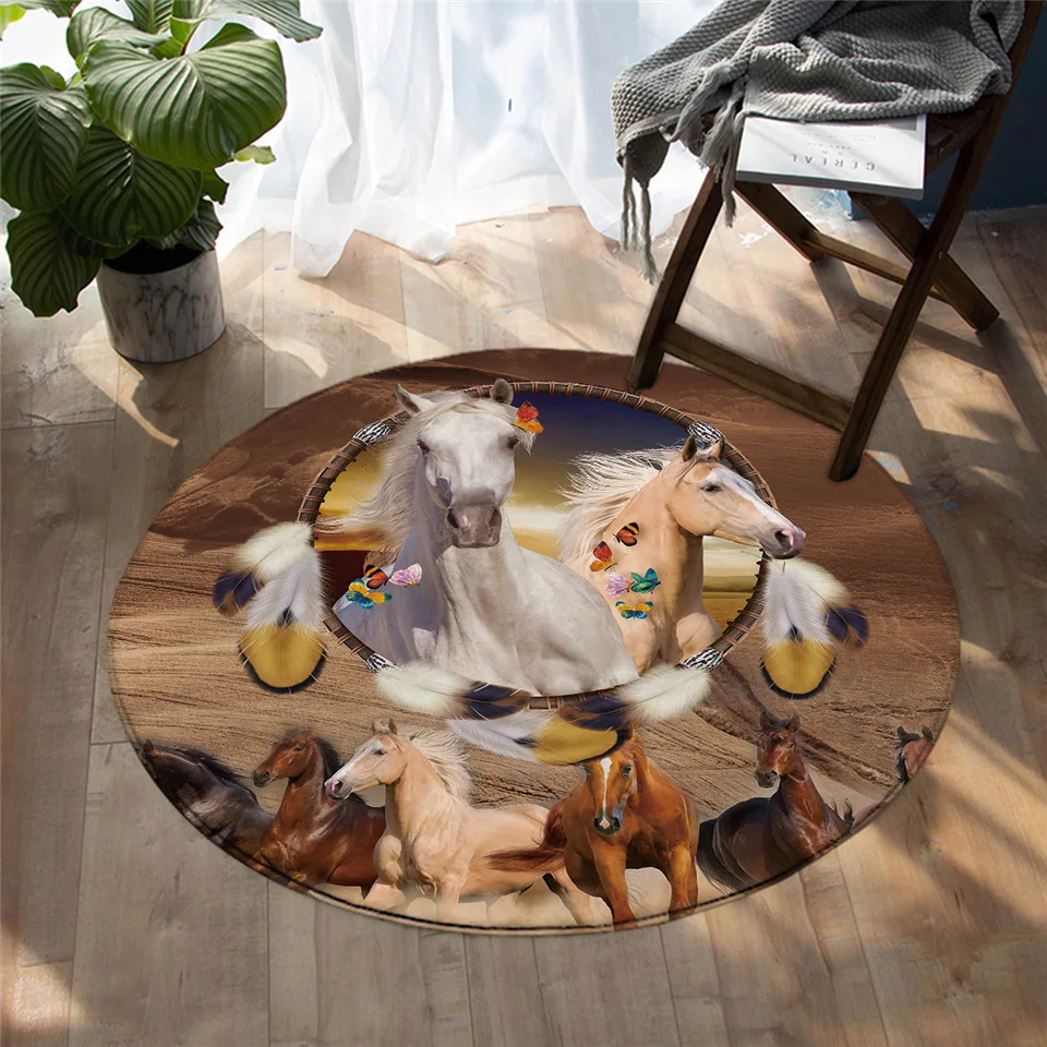 BeddingOutlet 3D напольный коврик с животными, Ловец снов, круглый ковер, коврики с рисунком кошачьей лошади, коврик с бабочкой, нескользящий коврик для йоги 150 см