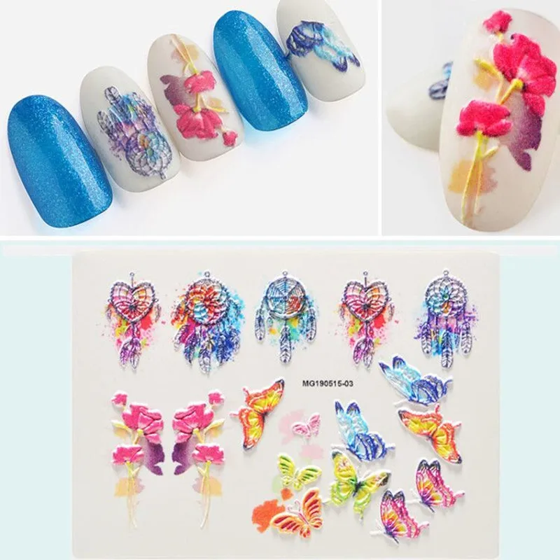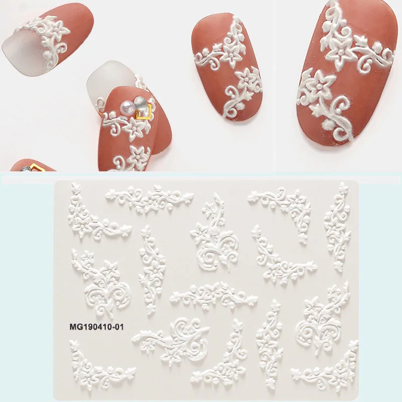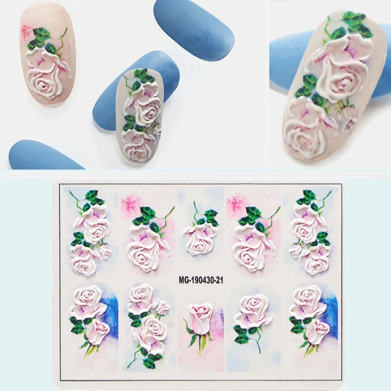 3D акриловая Выгравированная наклейка с цветком для ногтей рельефная Цветочная Роза десертная линия Водные Наклейки для ногтей эмаистические наклейки для ногтей водная горка