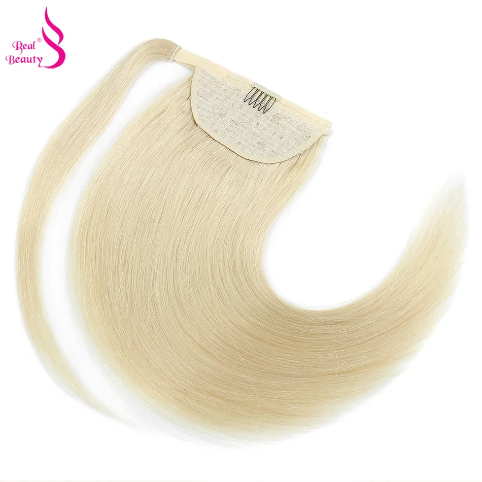 Настоящие Красивые прямые человеческие волосы конский хвост, обернутые вокруг европейских волос Реми, накладные волосы конский хвост для женщин, отбеливатель, блонд