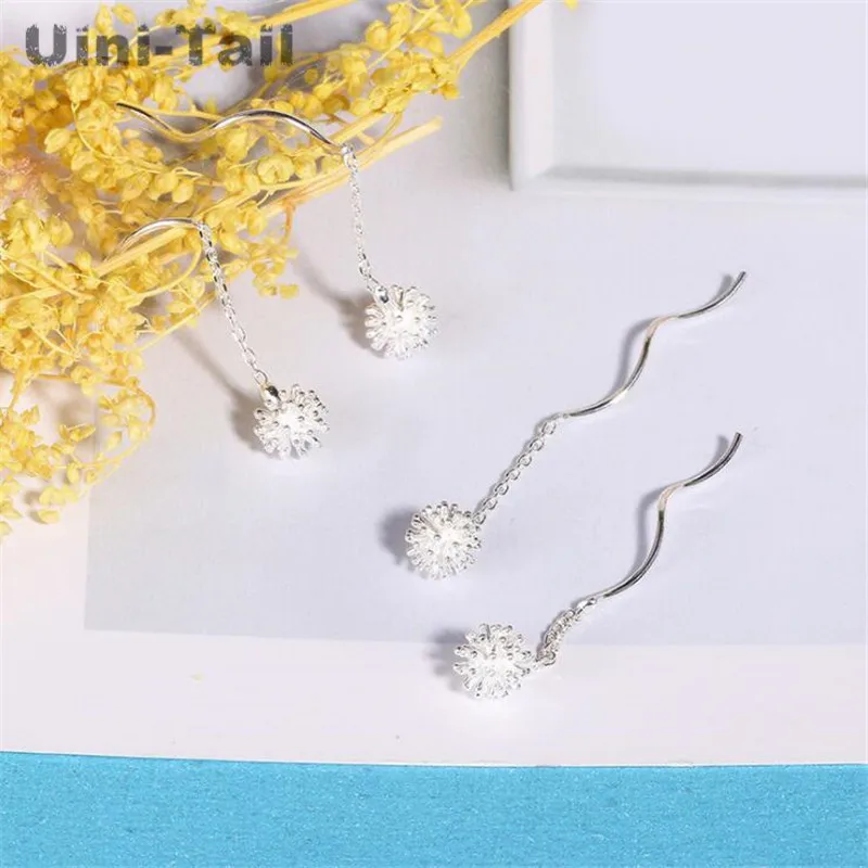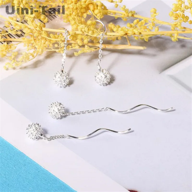 Uini-Tail, новинка 2019, женское серебряное фото, характерные Простые Длинные волнистые серьги с цветком, дизайнерские серьги