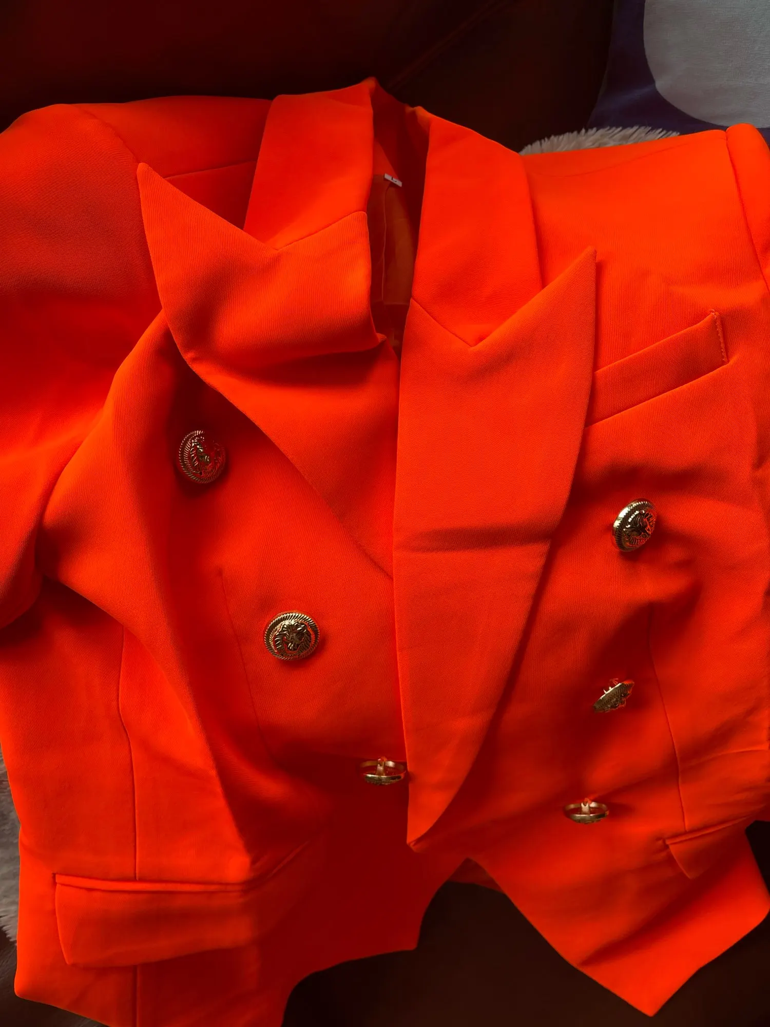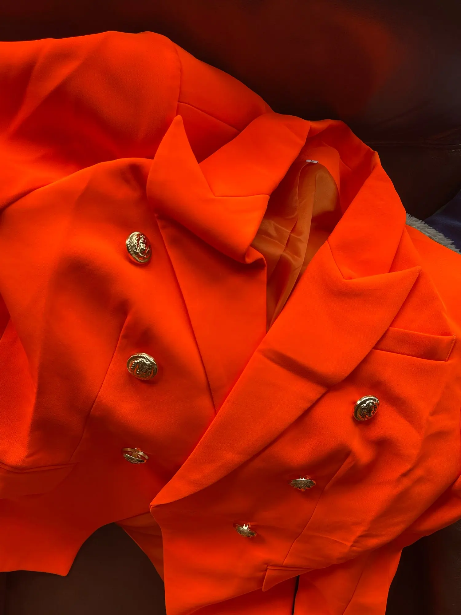 Блейзер Женский, с пуговицами в виде льва, двубортный, неоновый, оранжевый, 2021