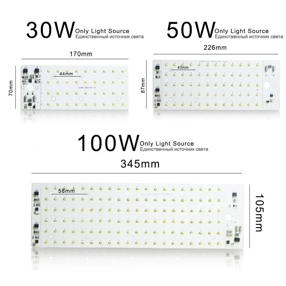 100 Вт, 12000лм, 5-8 м, Площадь облучения 50-100 квадратных метров.