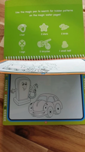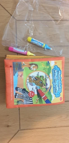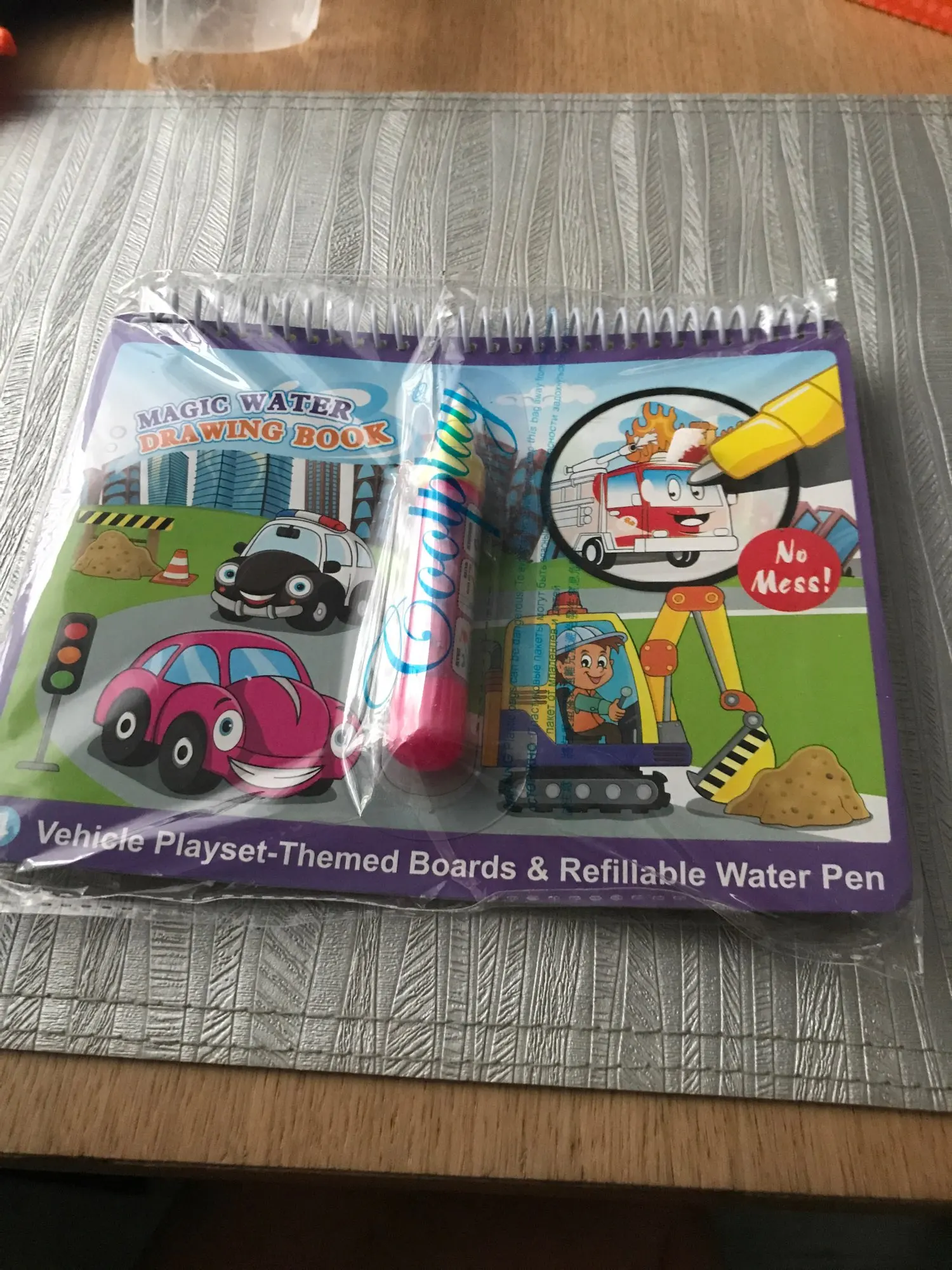 Хорошая водная раскраска. Брал с машинками. Пришла целая, без повреждений, без запаха. Только карандаш надо размочить хорошенько, а то начинает царапать поверхность.