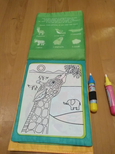 Очень понравилась раскраска, яркая, интересная. И действительно, когда вода высыхает рисунок можно разукрашивать ещё раз. Всем рекомендую. Спасибо продавцу!!!