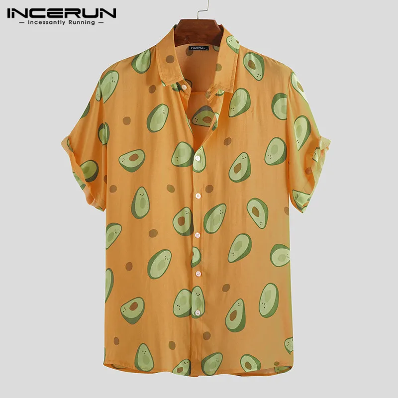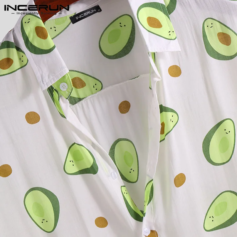 Рубашка INCERUN мужская с лацканами, модная повседневная, с принтом в гавайском стиле, праздничная уличная одежда с авокадо, 5XL8, лето 2022